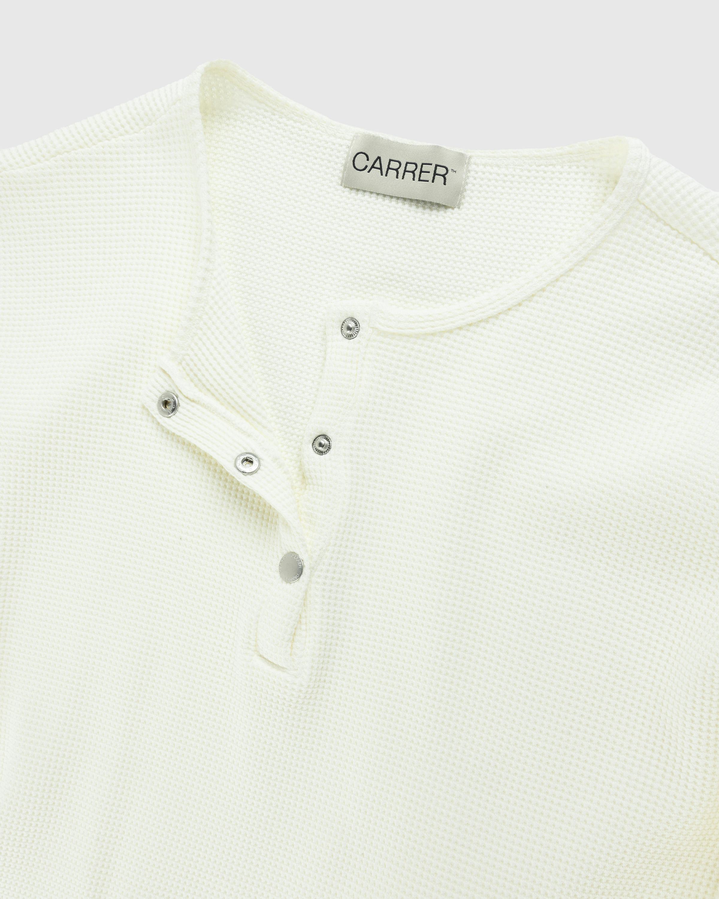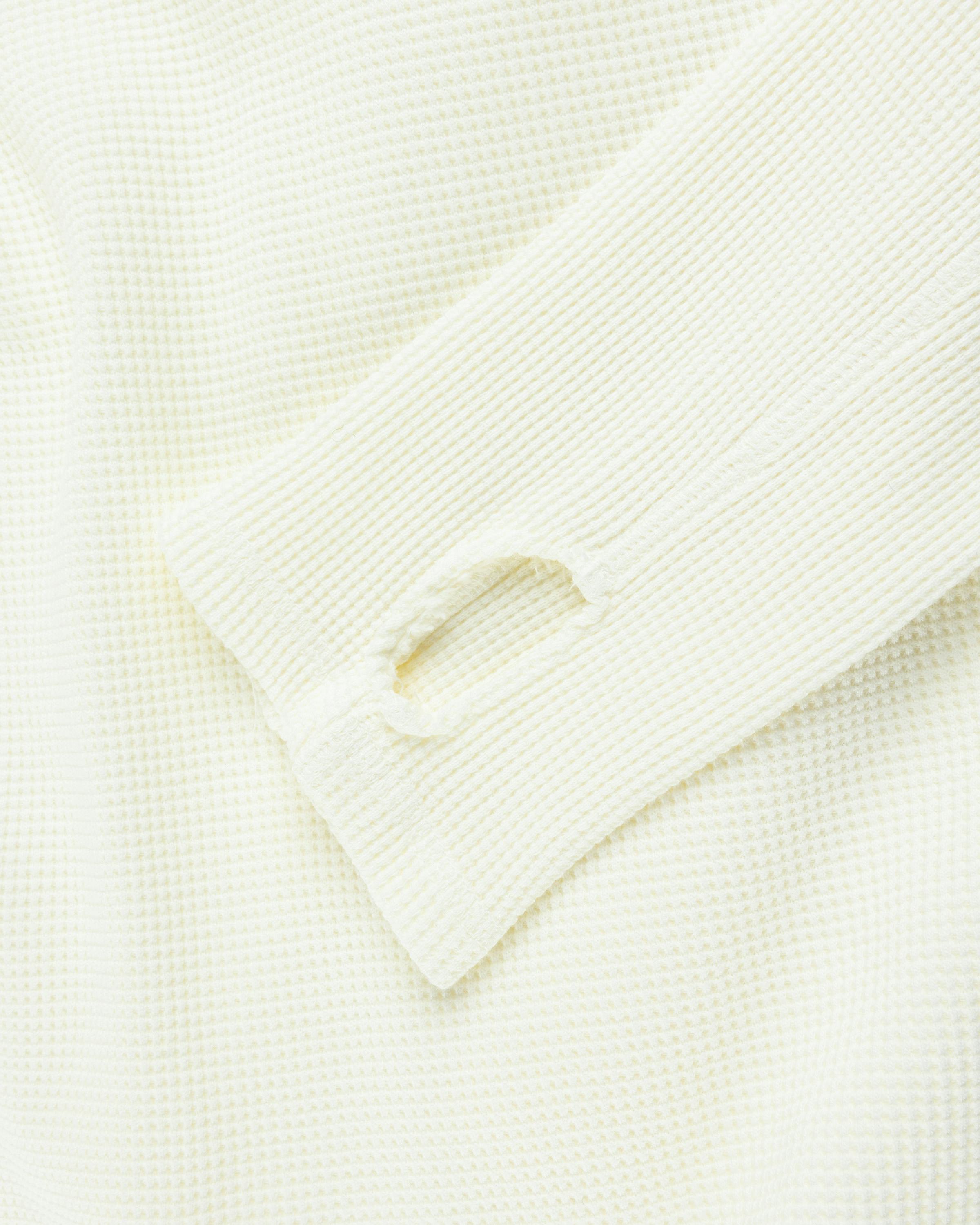 The Lis Henley is a relaxed-fitting long-sleeve style produced in 100% cotton with a traditional waffle knit. It features a crew neck with press stud fastening and a small logo flag incorporated into the side seam.
