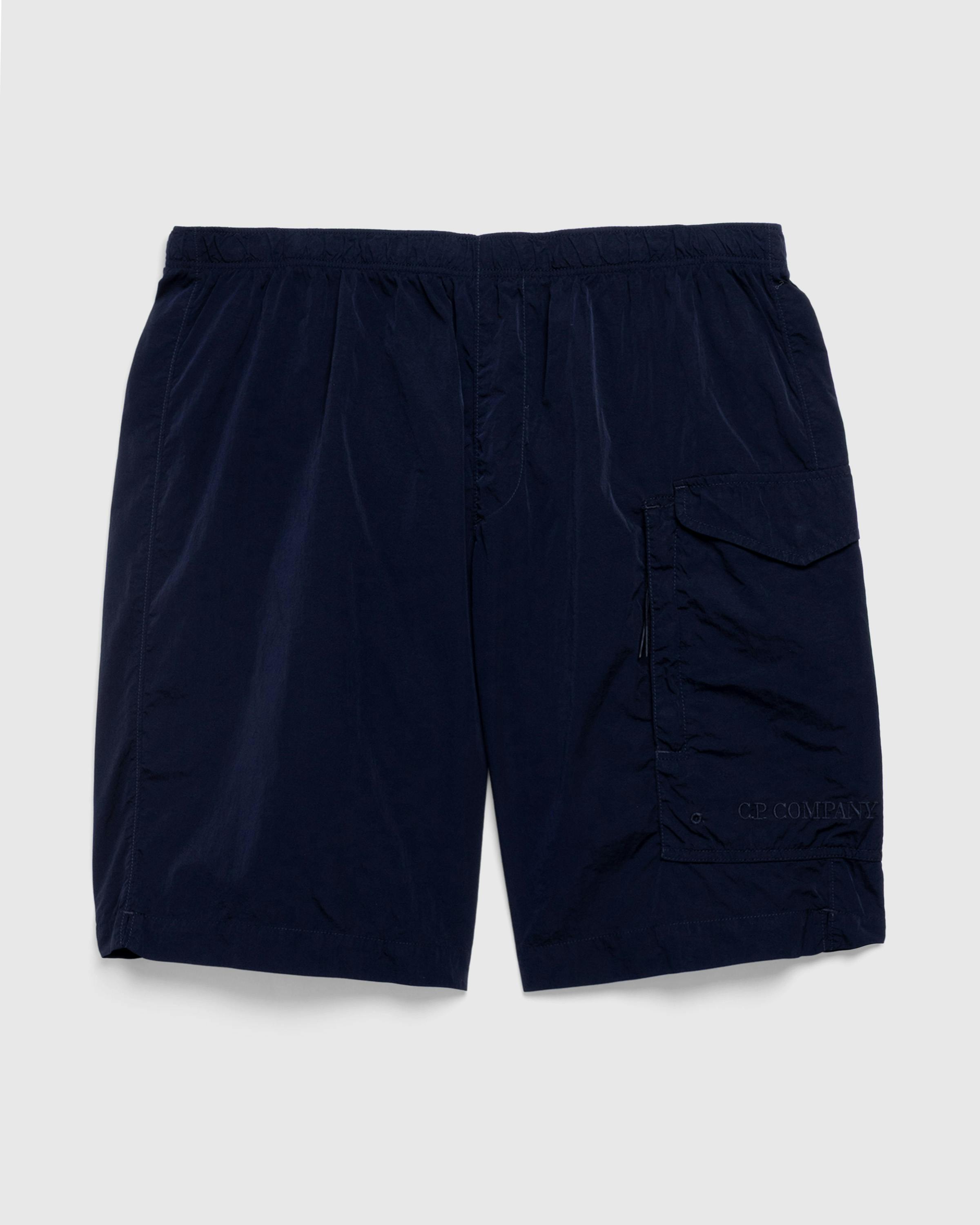 These C.P. Company shorts are produced in recycled Chrome-R, a woven multifilament nylon that acts as a barrier against water and wind. The fabric is developed specifically for garment-dyeing to create lighter and more vibrant tones. Cut at knee length, the shorts are outfitted with an elasticated drawstring waist and multiple pockets, including a cargo pocket featuring the brand’s signature lens detail.