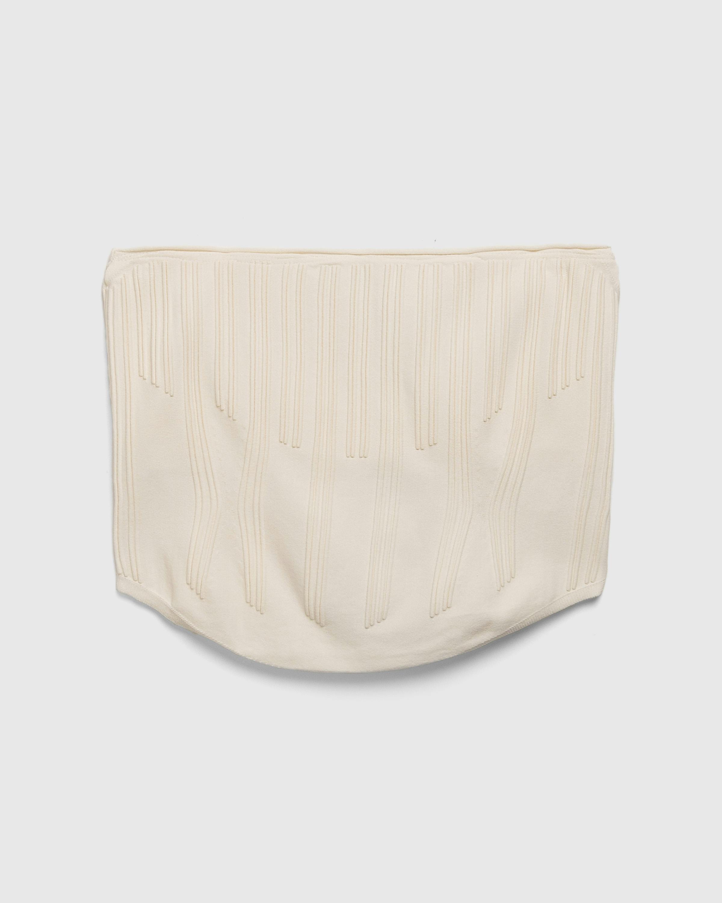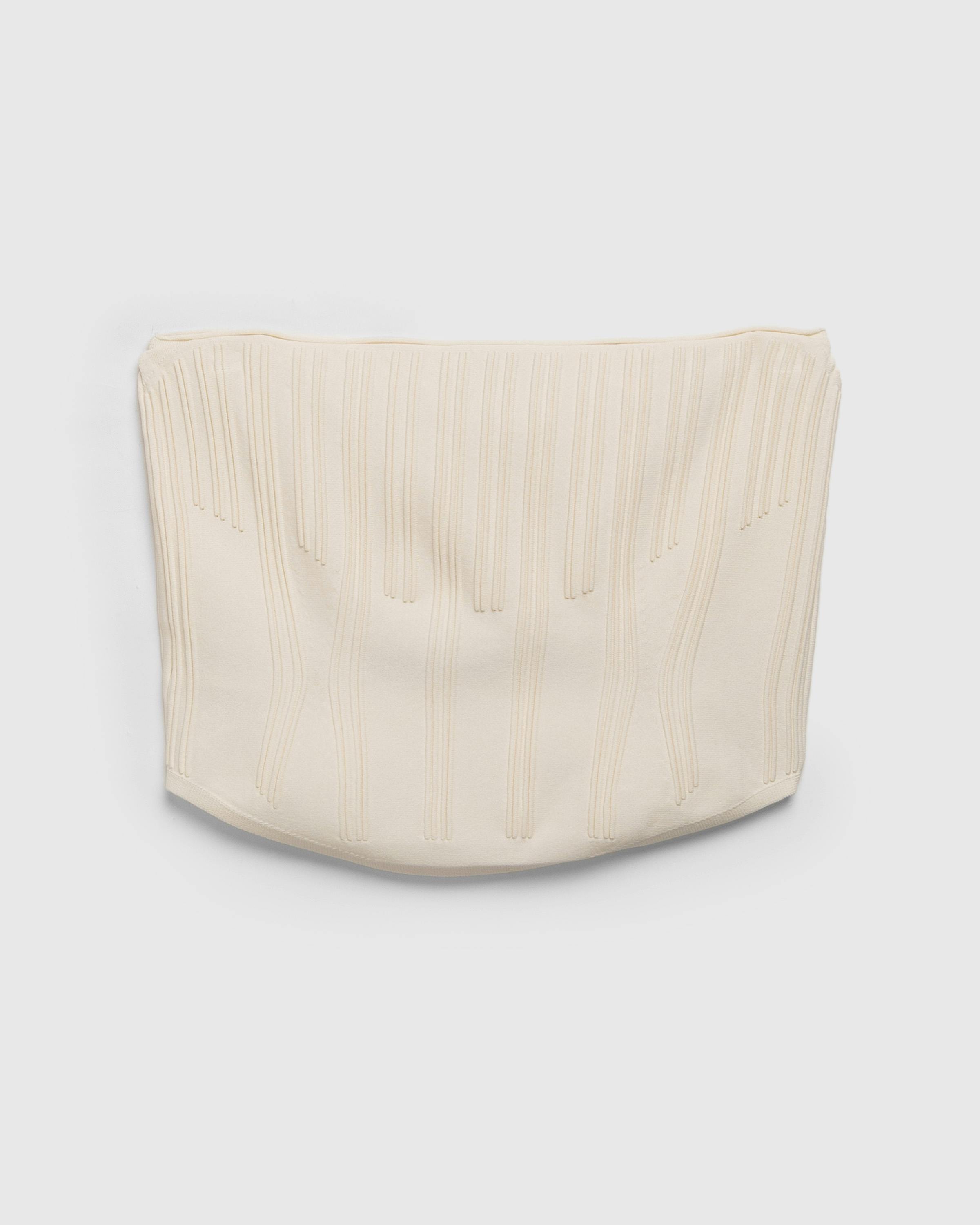 This Mugler Bustier is knit from a polyester blend fabric and cut for a form-fitting look. The strapless style boasts a corseted effect, defined by spiral detailing that brings texture and added dimension to the garment.