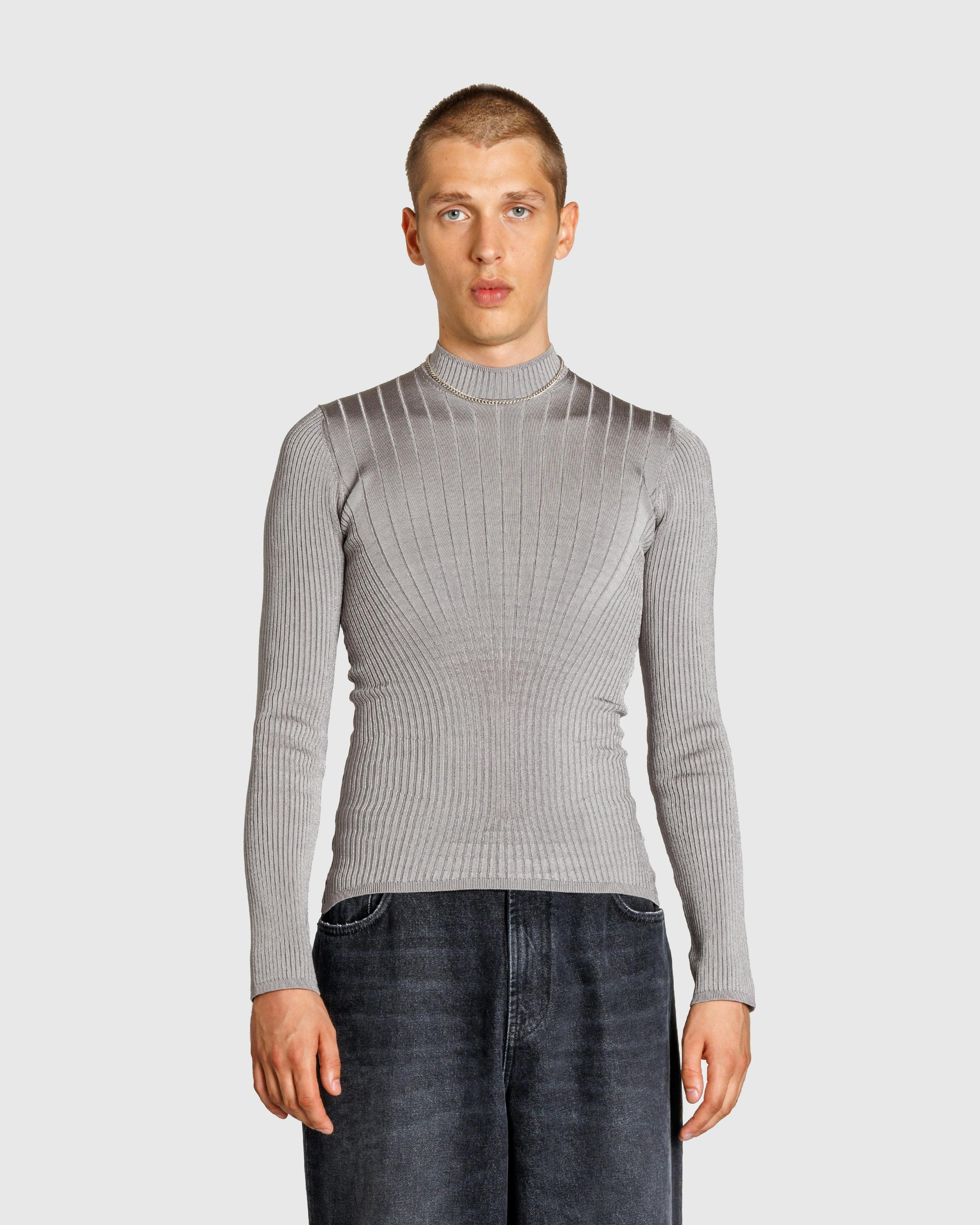 Per the name, this Mugler top is defined by its body sculpting effect. The garment is made in China from a lightweight rayon blend fabric, featuring a chimney neck, long sleeves, and a fitted body.