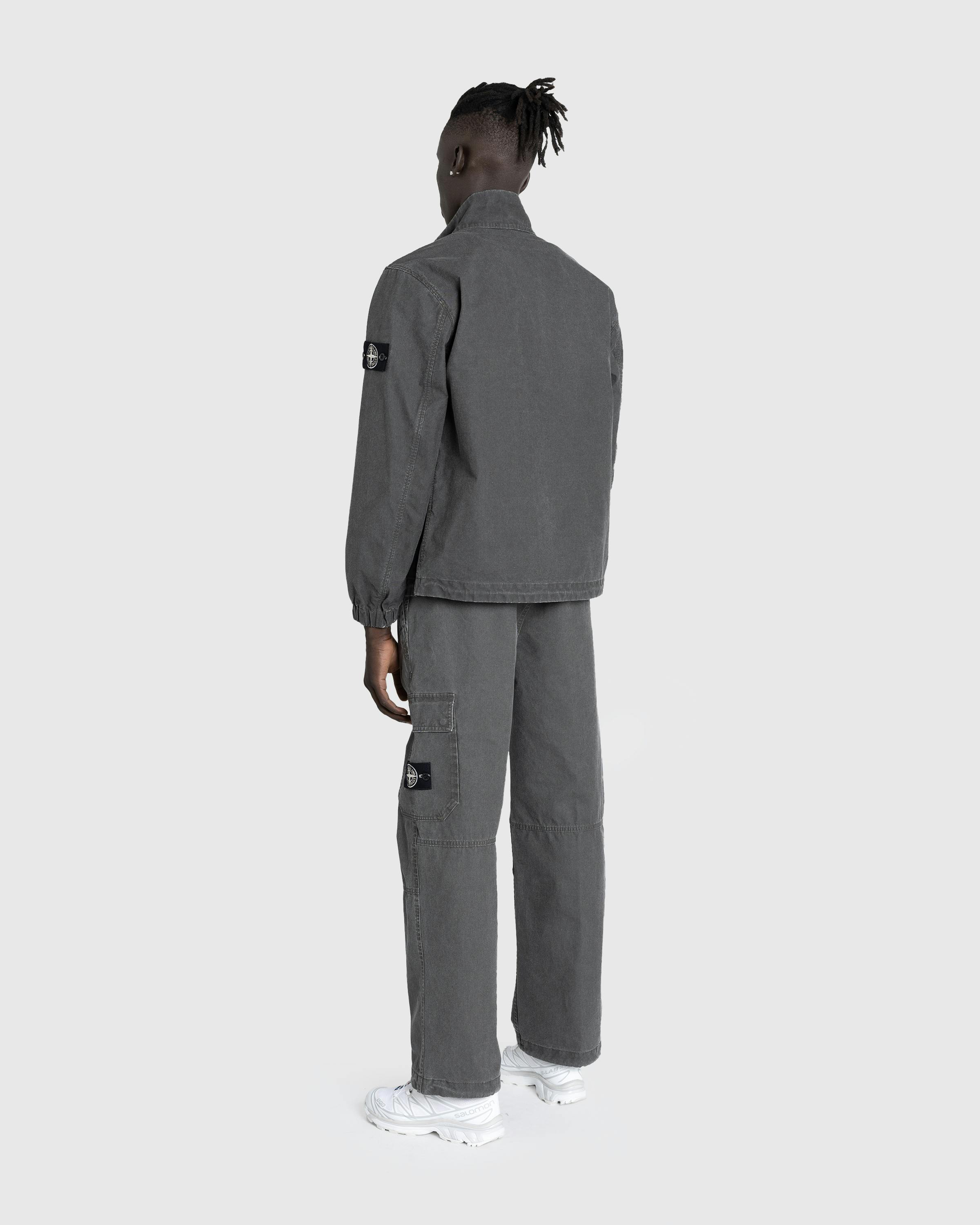This casual Stone Island outerwear style is crafted from a cotton blend fabric with a polyurethane resin coating that creates a distinctive finish. It features a stand collar, two-way front zip fastening, and elasticated cuffs, with slant pockets incorporated onto the front of the silhouette. The brand's signature Compass logo badge emerges on the left sleeve to complete the look.