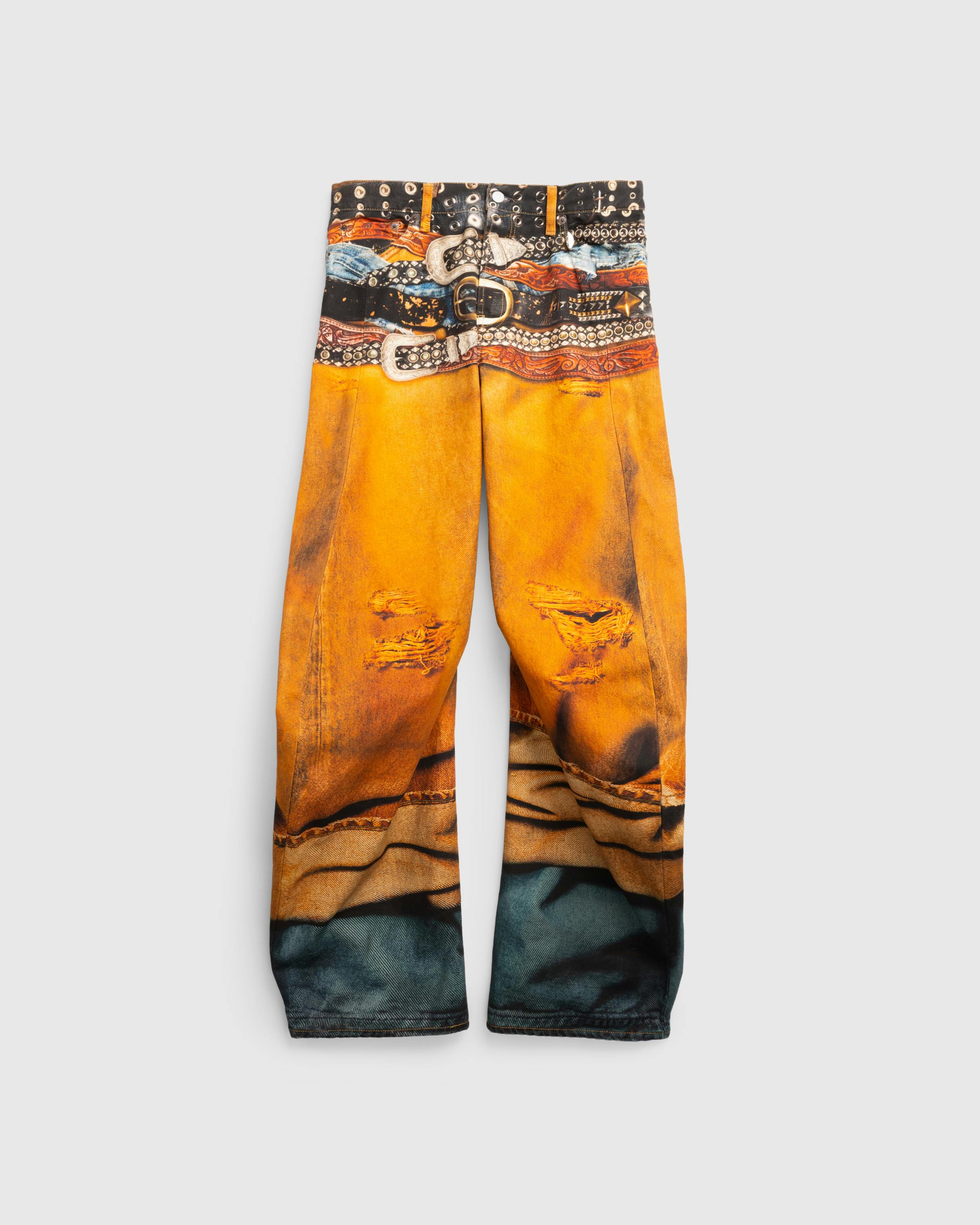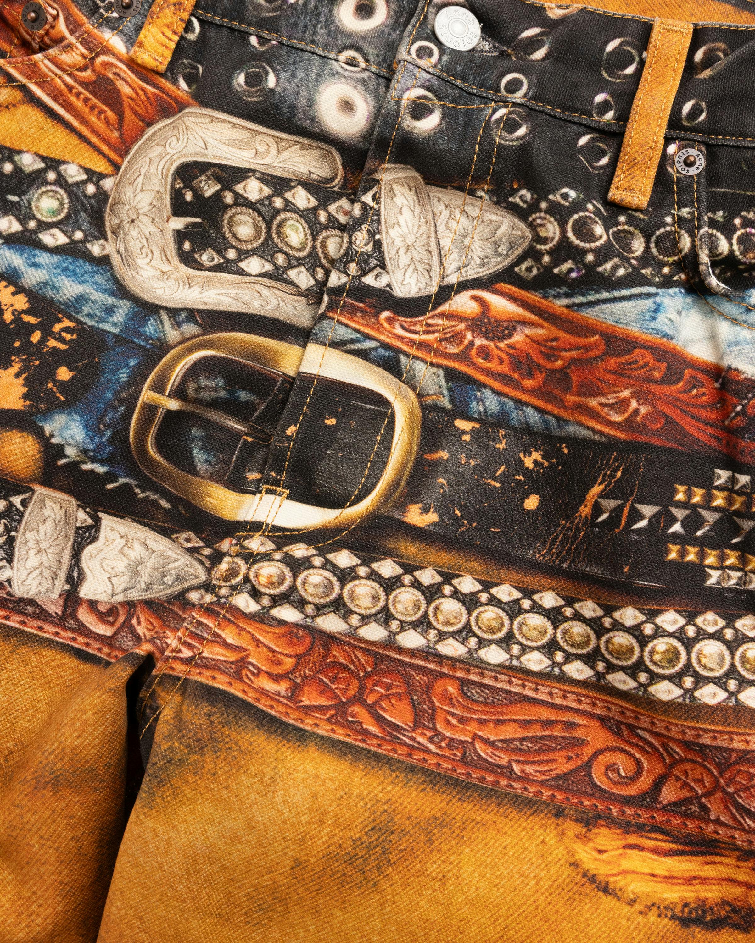 Acne Studios delivers an eye-catching take on its 2006M Jean. The pair is cut for a baggy fit with a wide leg and a low waist, and defined by a standout trompe l'oeil print. The pant features traditional five-pocket styling, with button fastening, a concealed fly, and belt loops lining the waist.