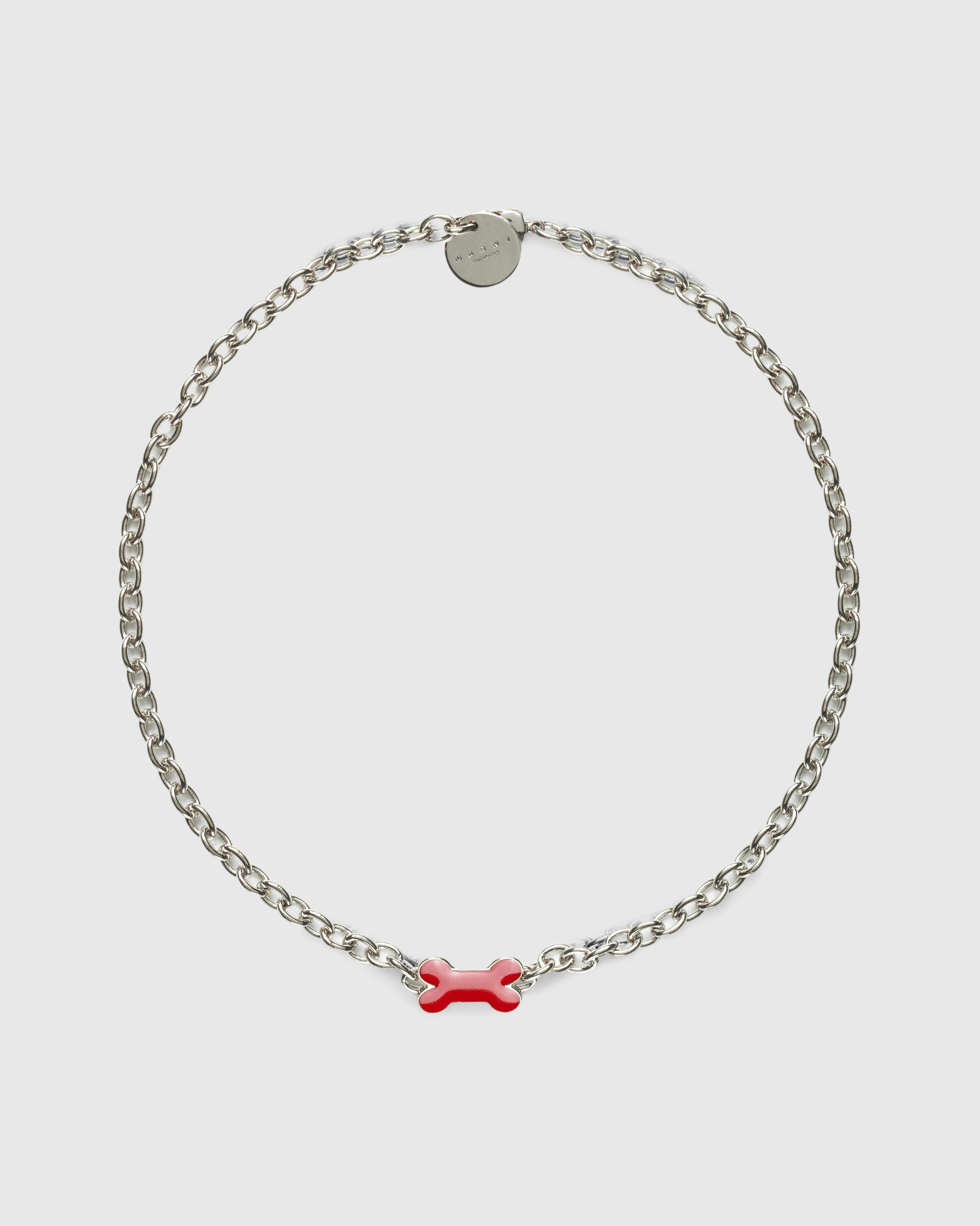 Sleek and minimal, yet ideal for accenting your outfits, this Marni necklace is from the brand's latest collection. The silver-tone accessory is crafted from brass and features a bone pendant detailed with a glossy red enamel finish along with a debossed Marni charm.