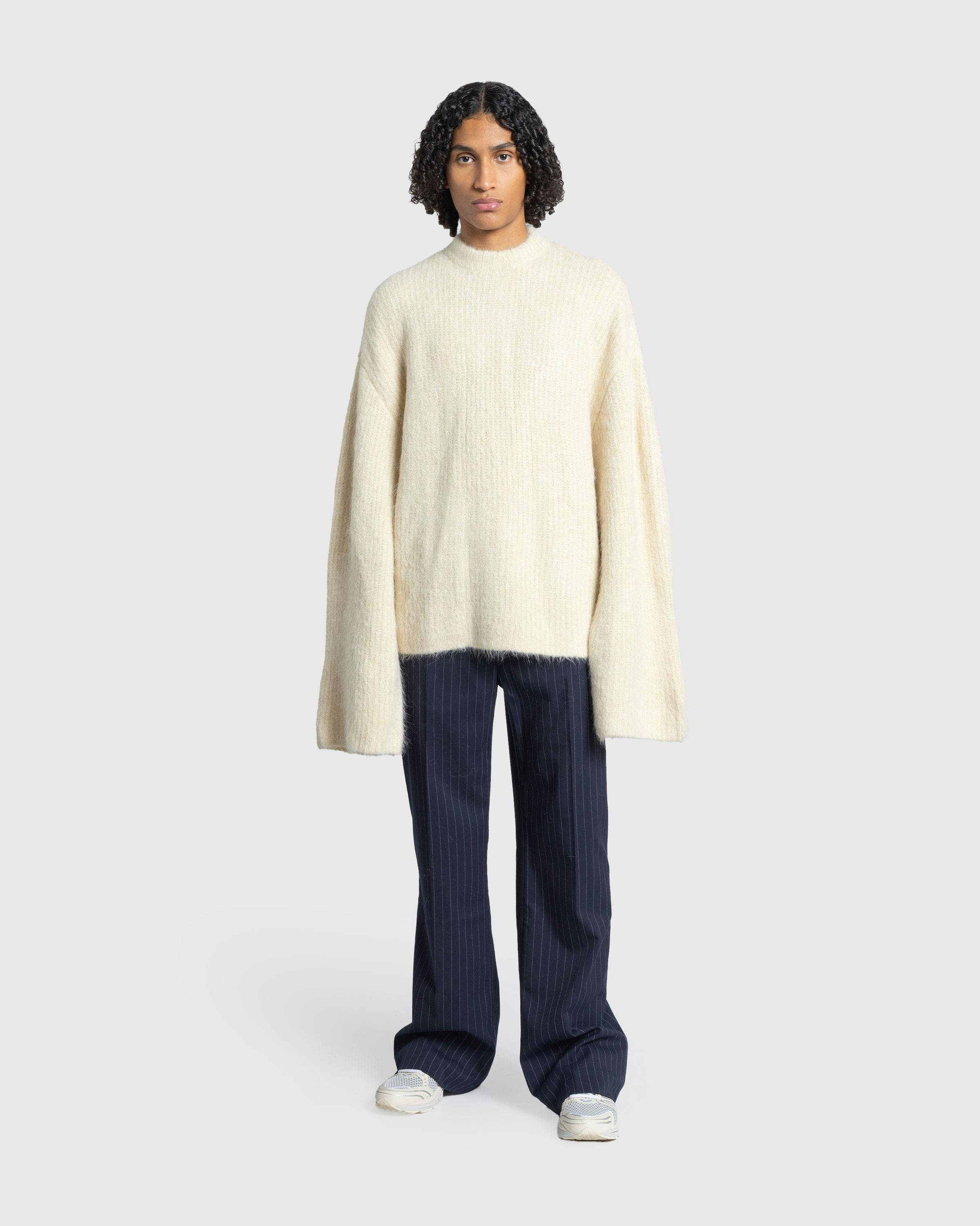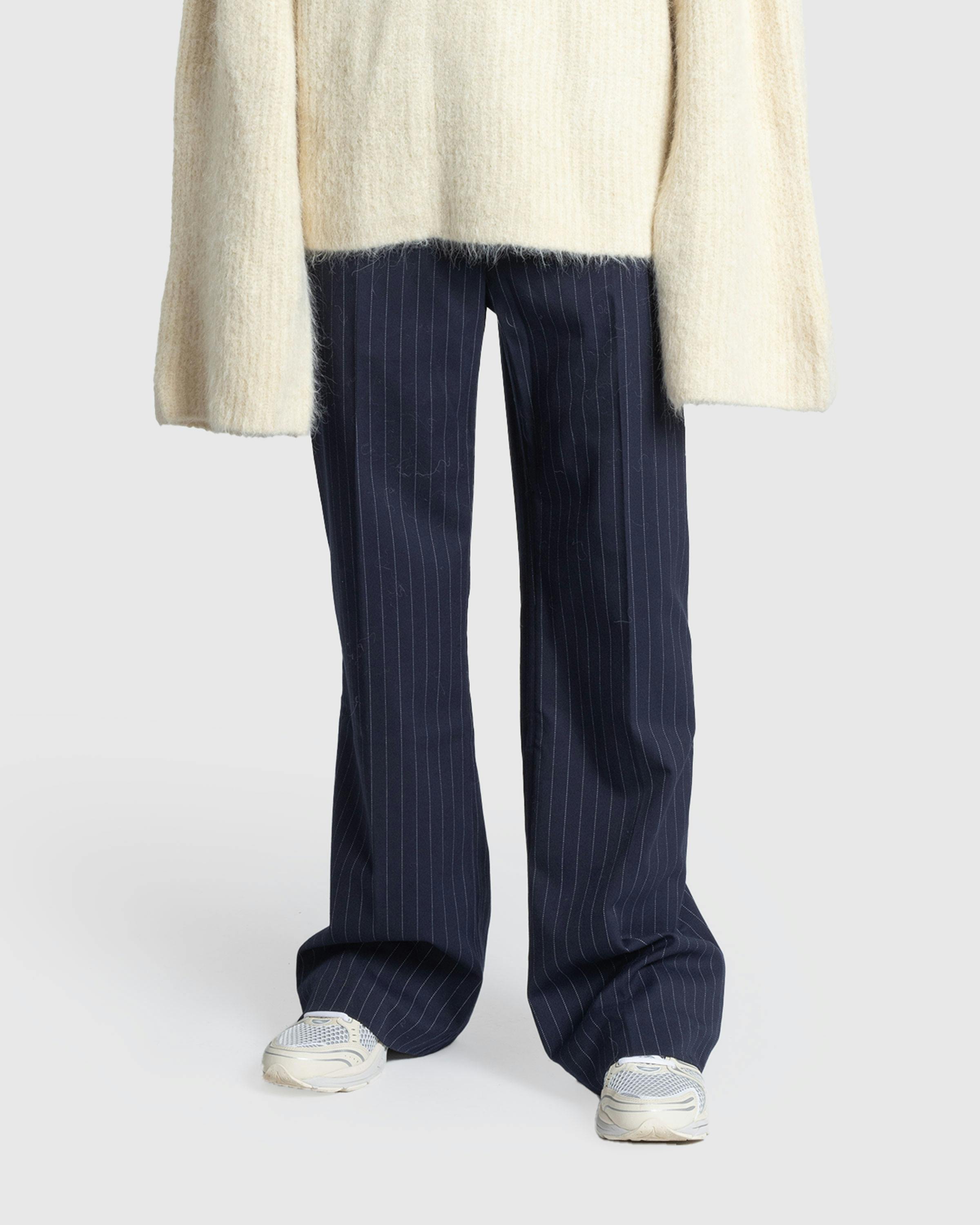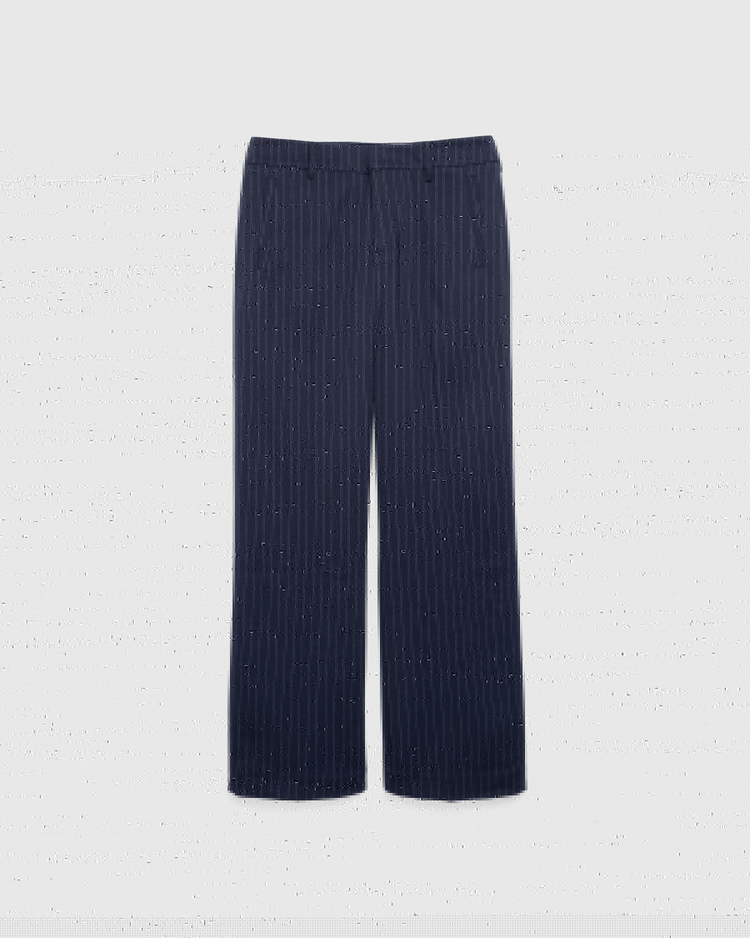 The Father Suiting Pant is a mature trouser style produced in a striped wool blend fabric. The pair is cut for a straight leg fit, featuring hook and eye fastening, back darts, and belt loops lining the waist. Welt pockets are incorporated onto the front and back of the silhouette to complete the design.