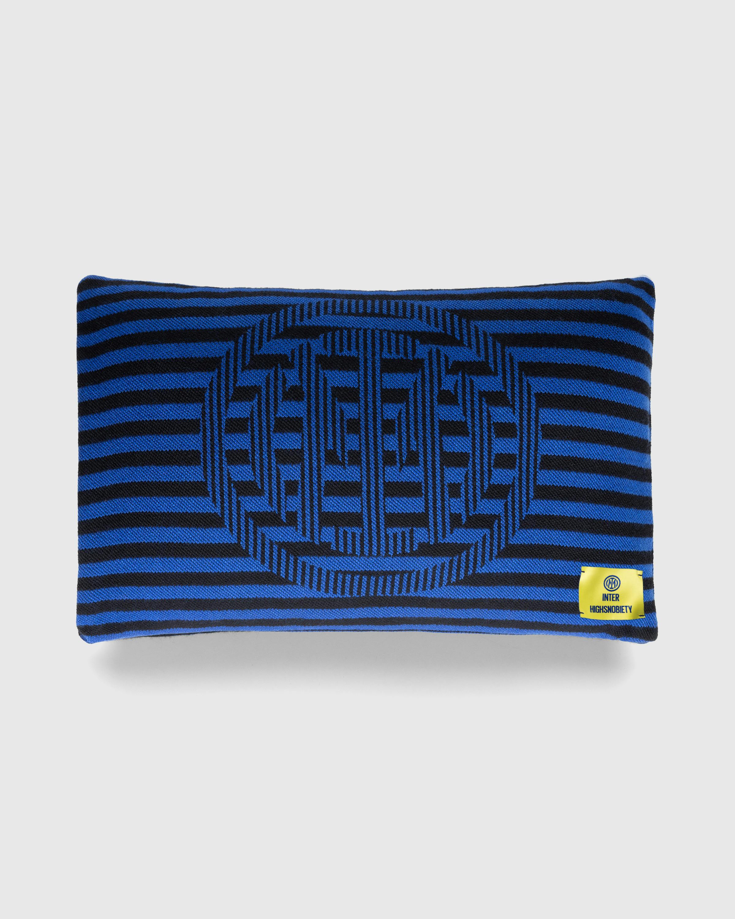 This collaborative cushion is made alongside the Milanese football team Inter and decorated with the club’s signature colors. The cushion is crafted from a wool and cotton blend and features a woven logo near the seam. A matching blanket is also available.