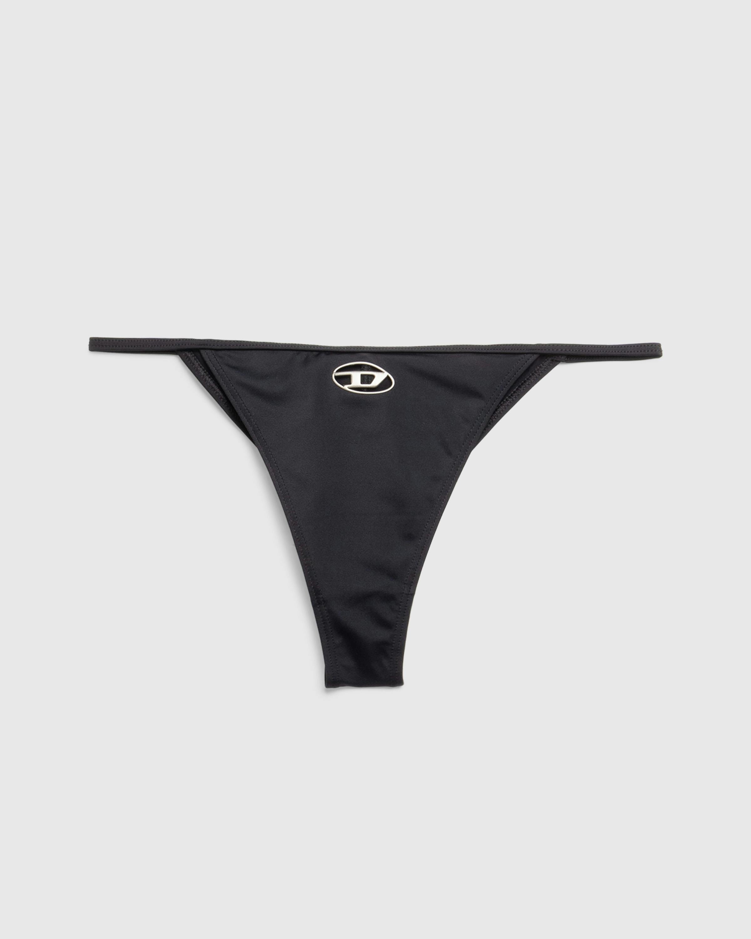 This Diesel bikini bottom is made from a recycled stretch fabric in a hip-framing tanga silhouette. It features a slim elasticated waistband and a center back seam. The iconic Diesel oval D is implemented by way of a metallic cut-out for an authentic finishing touch.