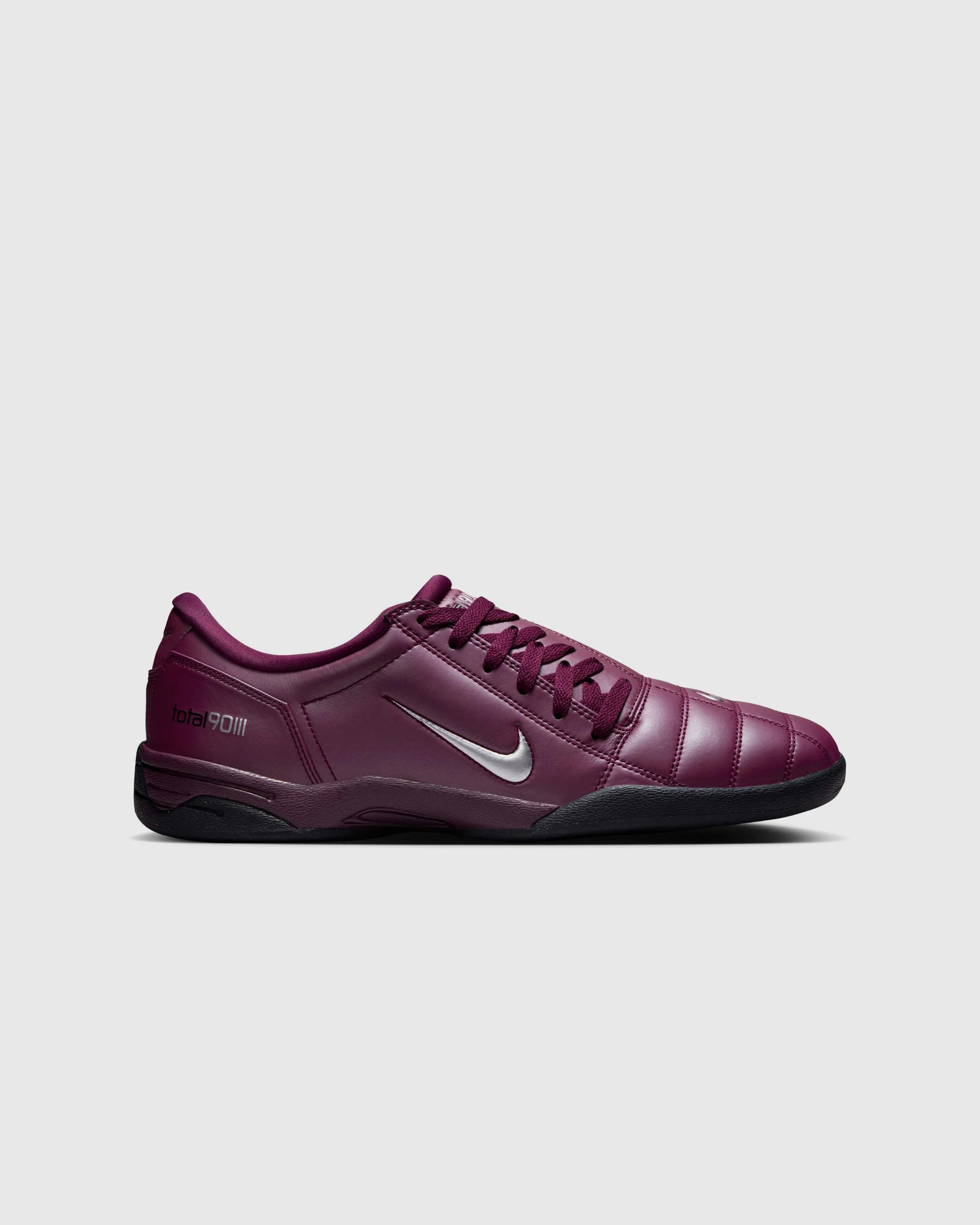 With the T90, Nike revitalizes a football boot-inspired favorite. The sleek silhouette clearly draws from classic football style, now geared towards wear in the streets. It boasts an overall streamlined look, featuring a synthetic leather upper decorated with Swoosh and 90 logos throughout.