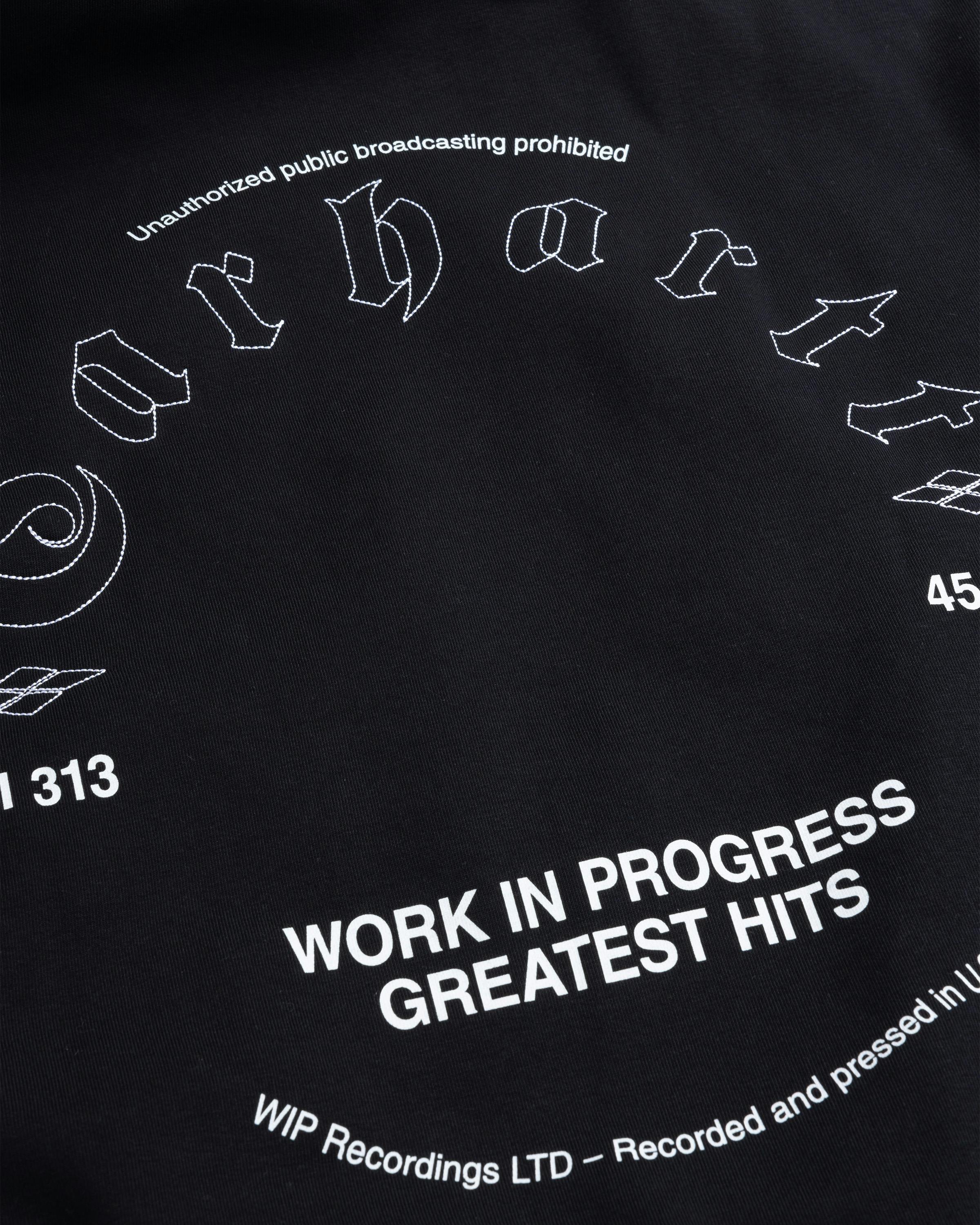 The Hooded Greatest Hits Sweatshirt is a cozy pullover style produced in a heavyweight polycotton jersey. It has a balloon fit that is a little looser and boxier, with dropped shoulders and rib knit trims. Additional design elements include an adjustable drawstring hood, a kangaroo pocket, and graphic detailing on the front and the back of the garment.