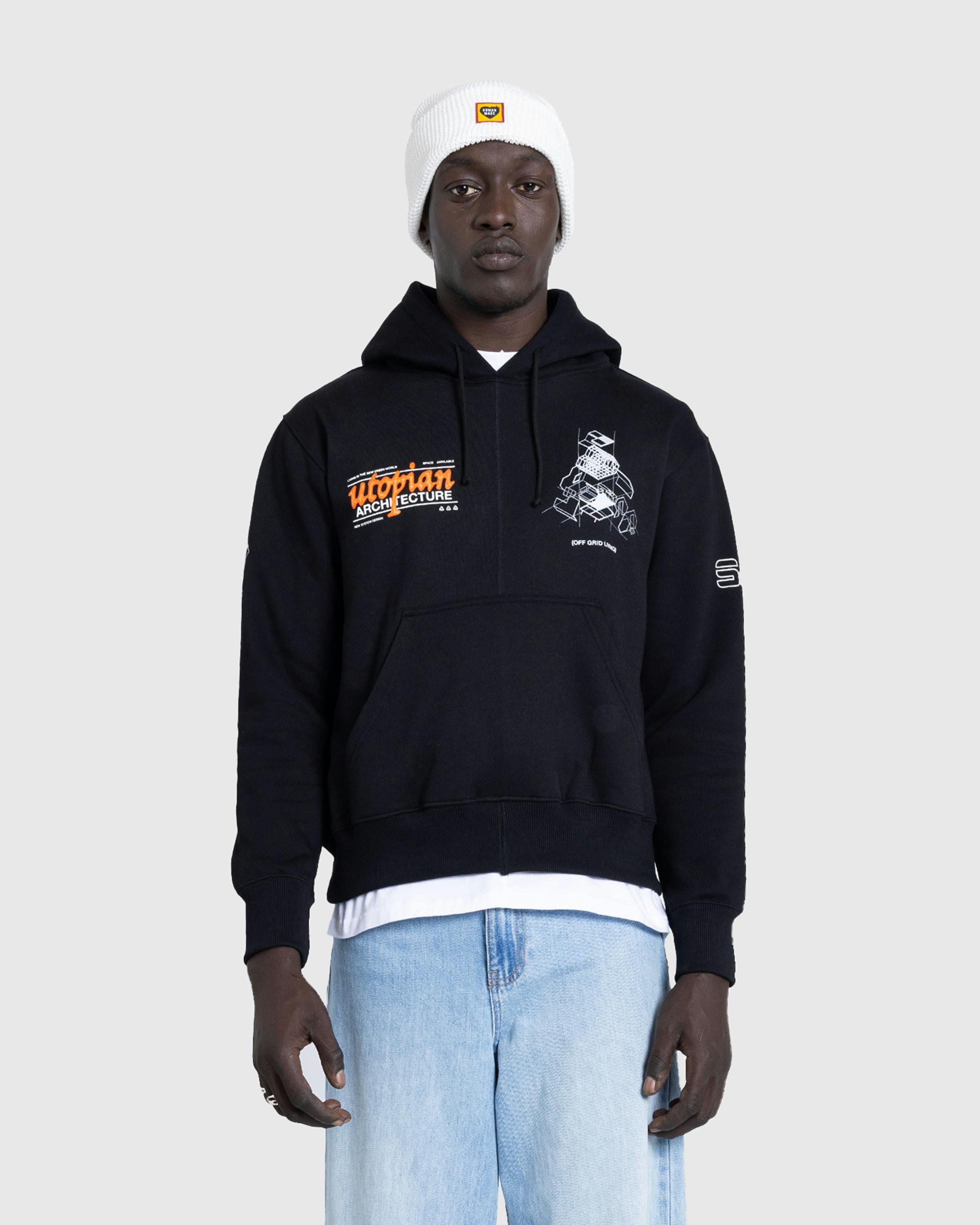 Space Available is a creative studio known for its environmentally conscious designs. Pieces like the Utopian Architecure Hoodie are made from upcycled materials to lower the impact on the environment. Off-cuts are sourced from various garment factories, and products come with a recycled plastic swing tag that can be reused as a coaster or desk object.