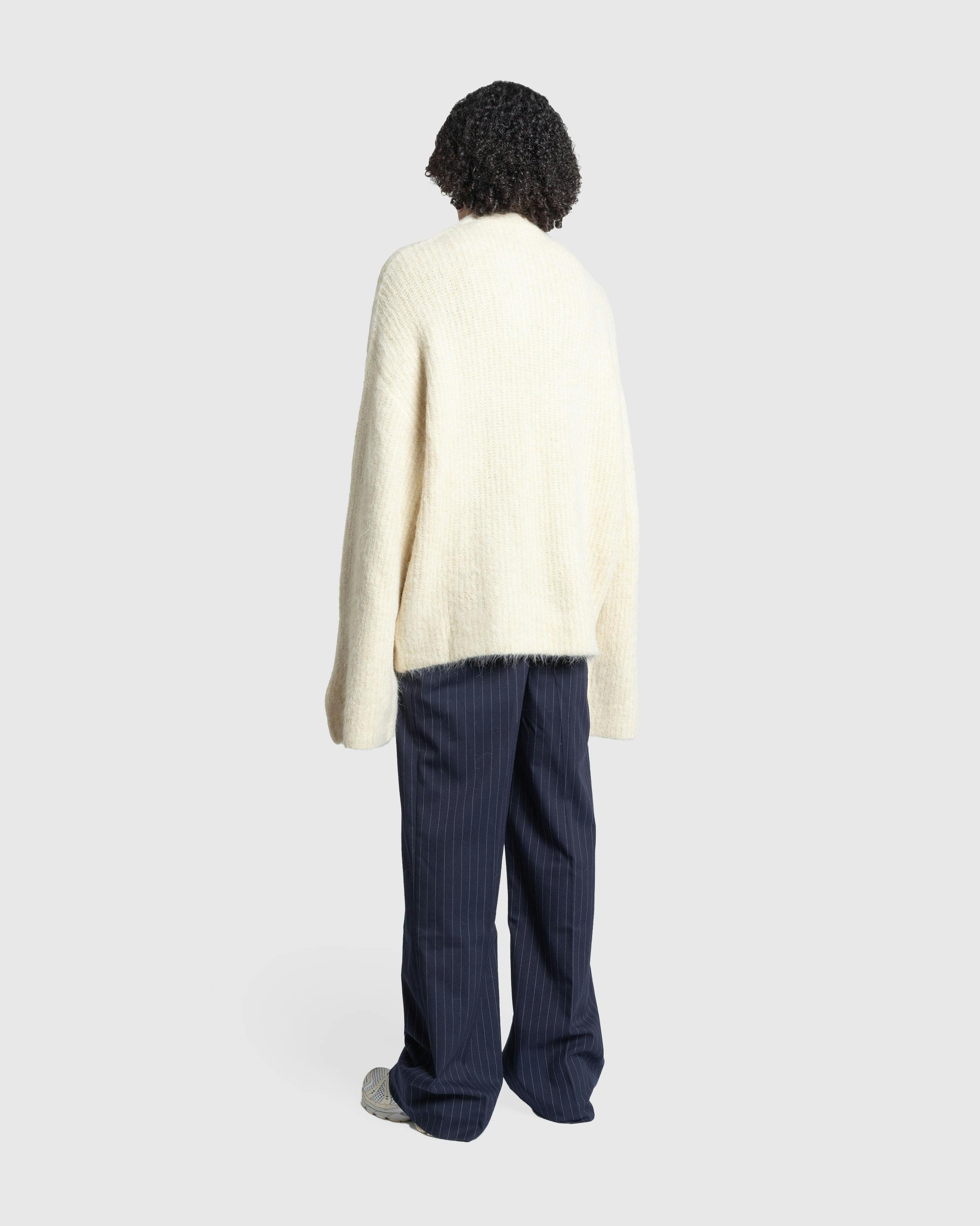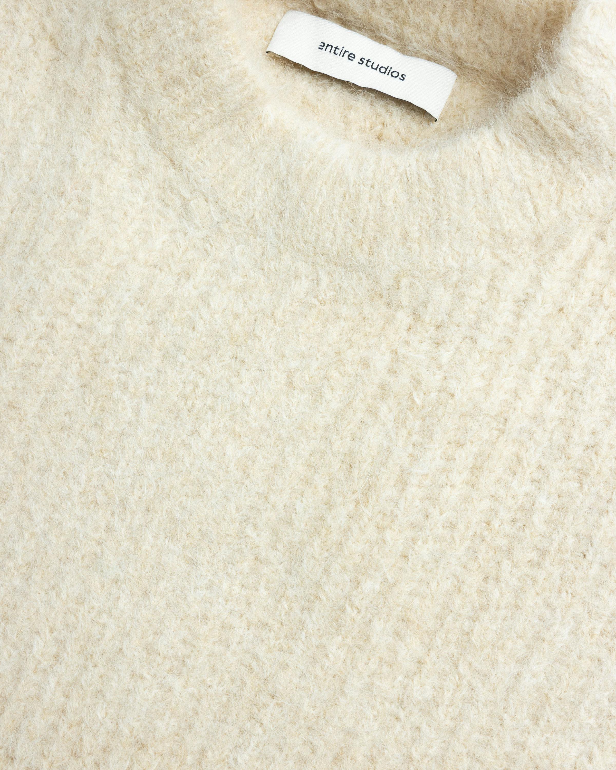 The Heavy Crew is a cozy knit style crafted from a soft alpaca blend fabric. It offers an oversized fit for superior comfort and a standout look. The sweater features a classic round neckline, elongated sleeves, and a straight hem.