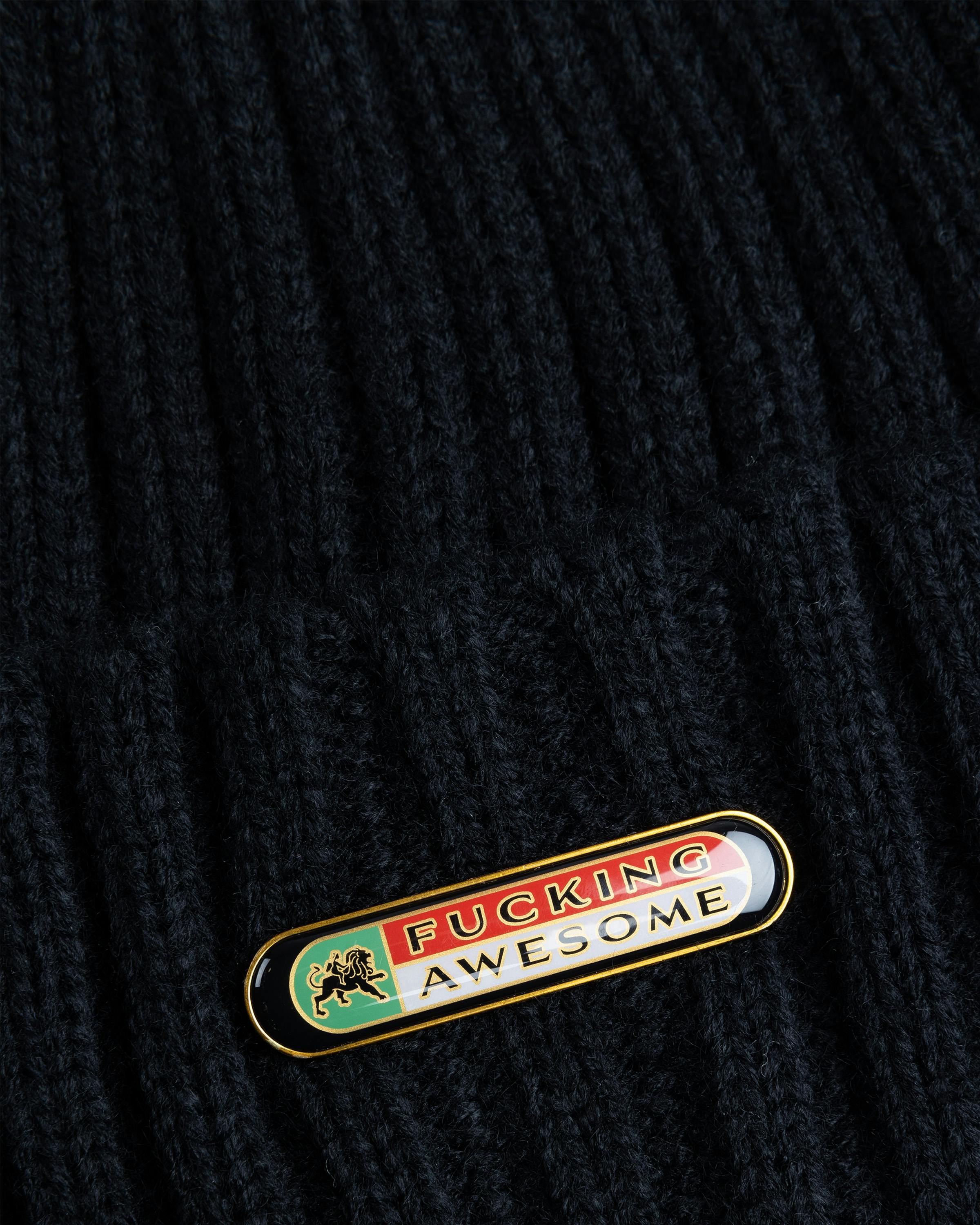 The Judah Beanie is knit from a soft acrylic mohair fabric for superior warmth in cold weather. It is branded with antique brass logo hardware front and center on the cuff.