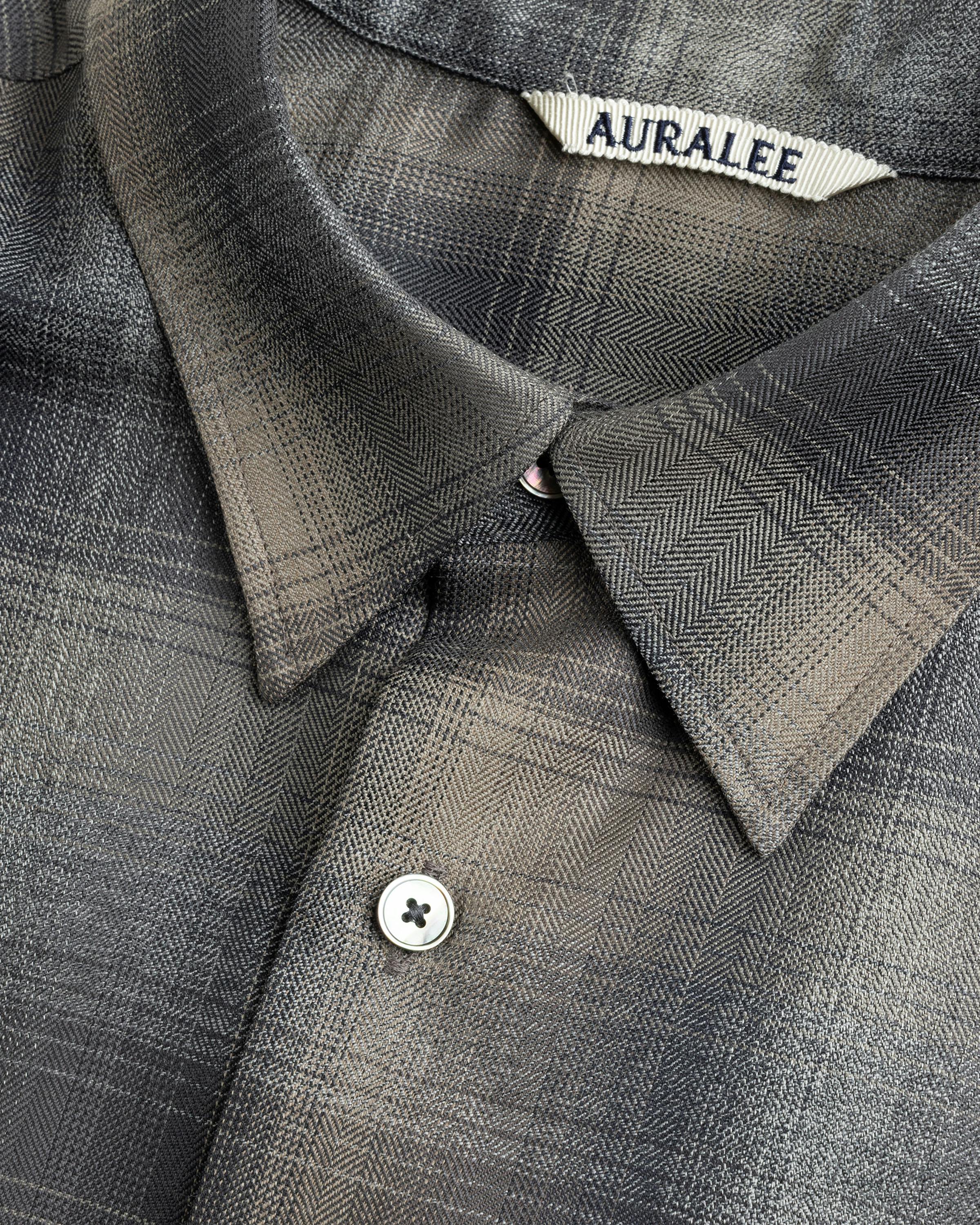 This seasonal Auralee button-down is made of lightweight wool herringbone fabric with an all-over check pattern. It is cut for a standard fit and features traditional design elements such as a spread collar, full front button fastening, button barrel cuffs, a shirttail hem, and back pleats. A single patch pocket is incorporated at the chest to complete the design.