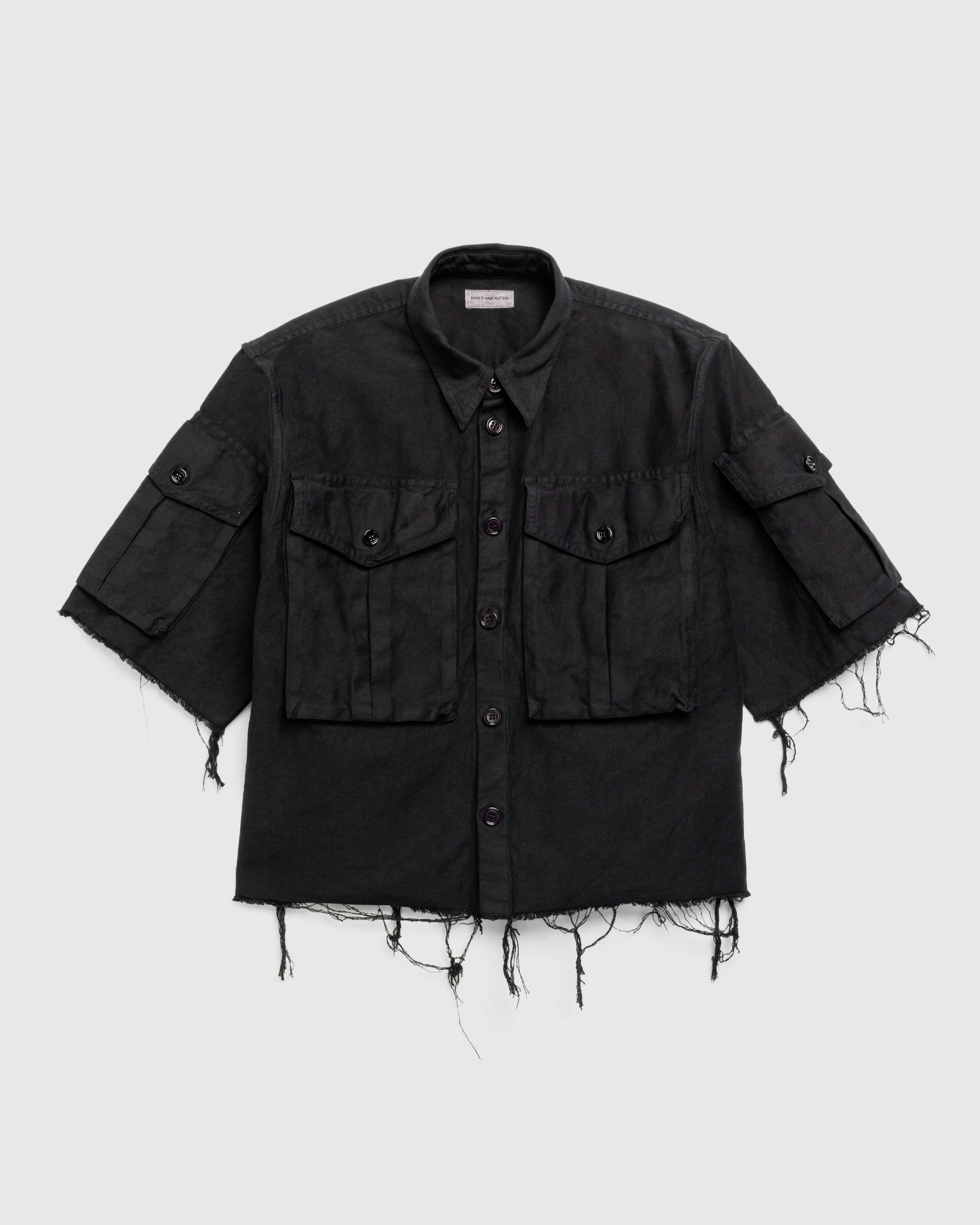 The Century Shirt is a standout button-down style produced in 100% cotton. Cut for a boxy fit, the garment is detailed with frayed edges at the cuffs and hem, while being defined by flap button pockets that are incorporated at the chest and sleeves. Additional design elements include a point collar and front button fastening.
