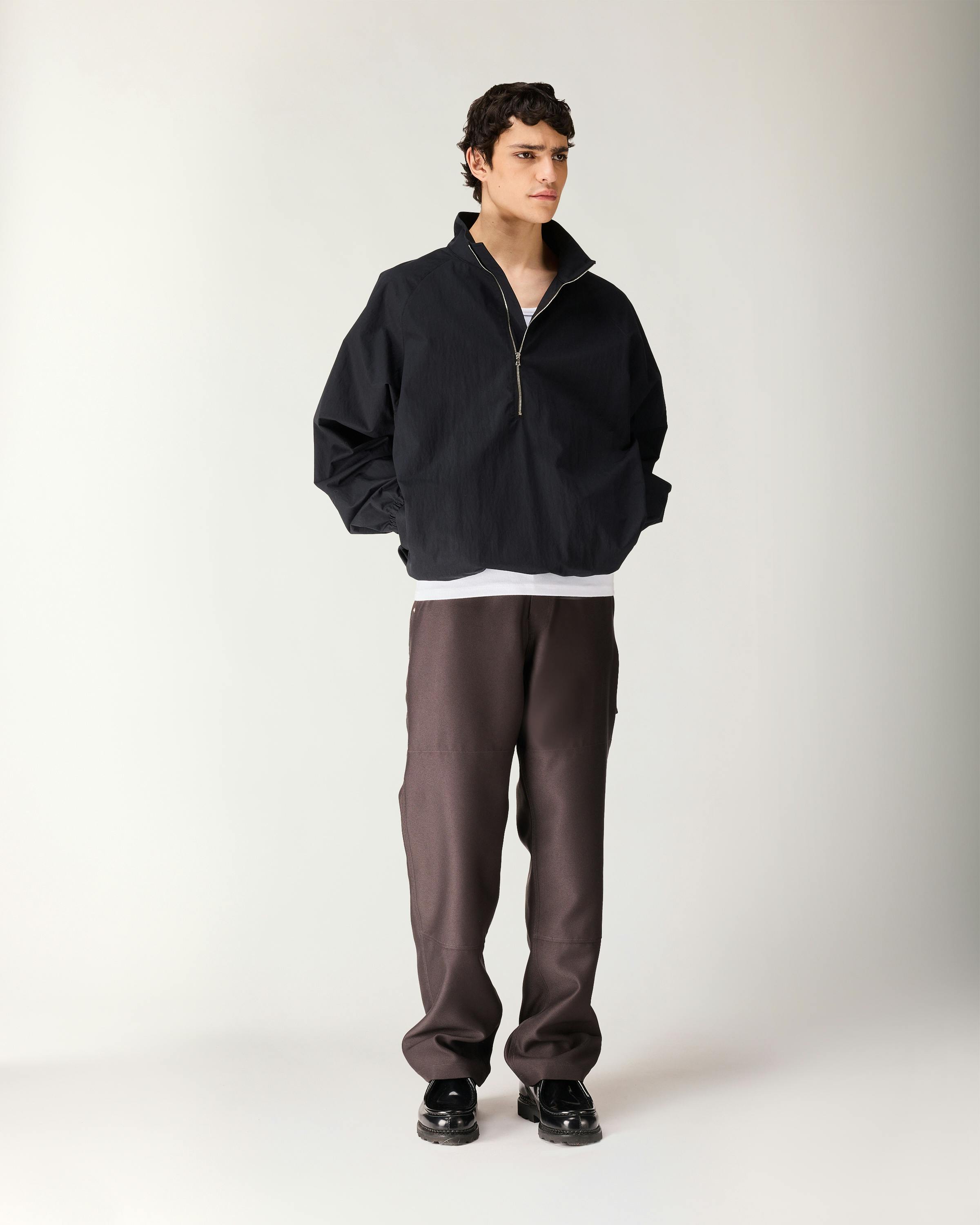 The Brushed Nylon Pullover Jacket is a new HS05 style crafted for formal and informal occasions alike. The outerwear style is made from a soft, brushed cotton and nylon blend with a half-zip opening and features ribbed cuffs with an adjustable hem.