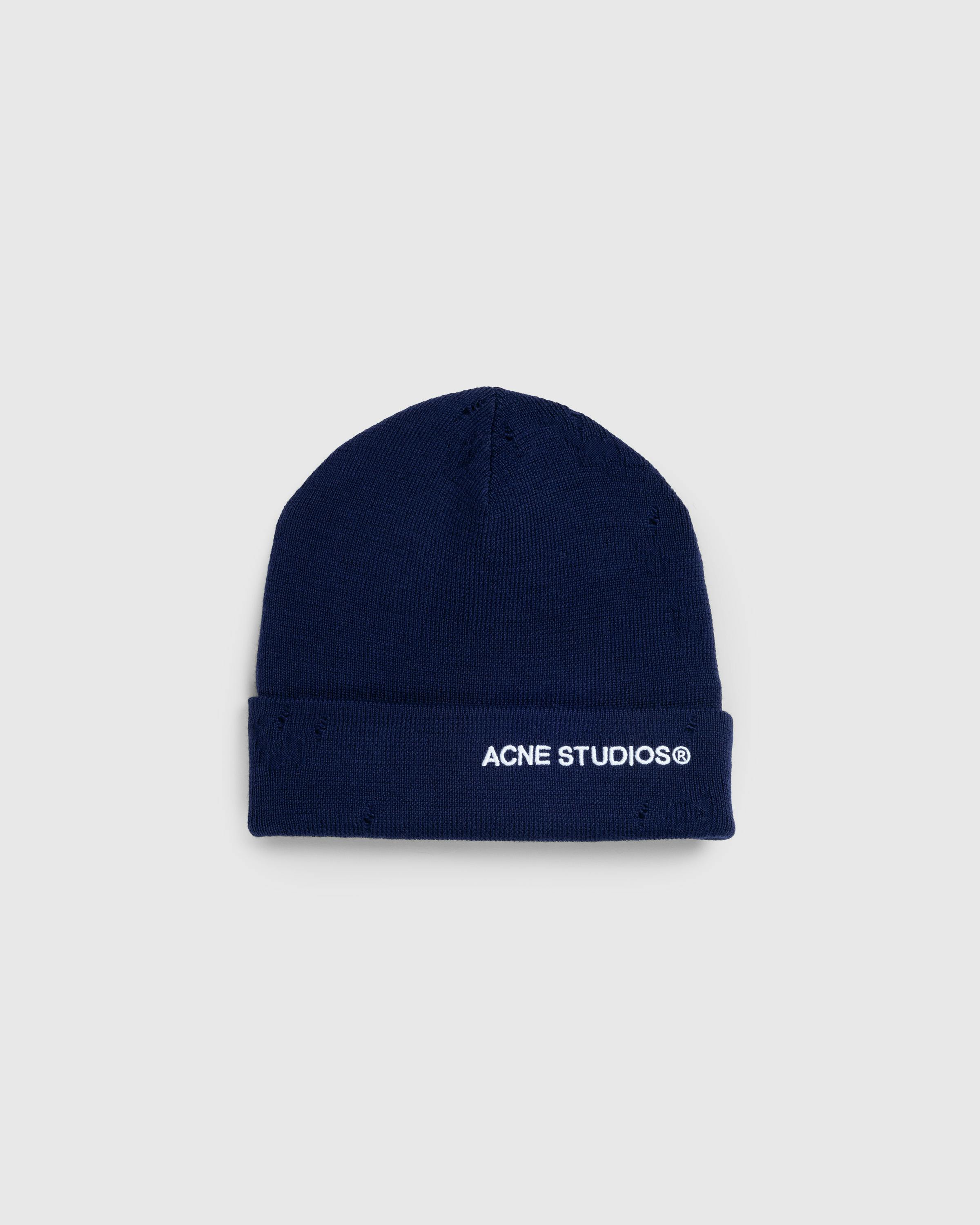 A seasonal headwear style, this Acne Studios beanie is constructed from a soft wool blend fabric. It arrives in a versatile navy colorway with contrasting logo embroidery incorporated onto the upturned edge.