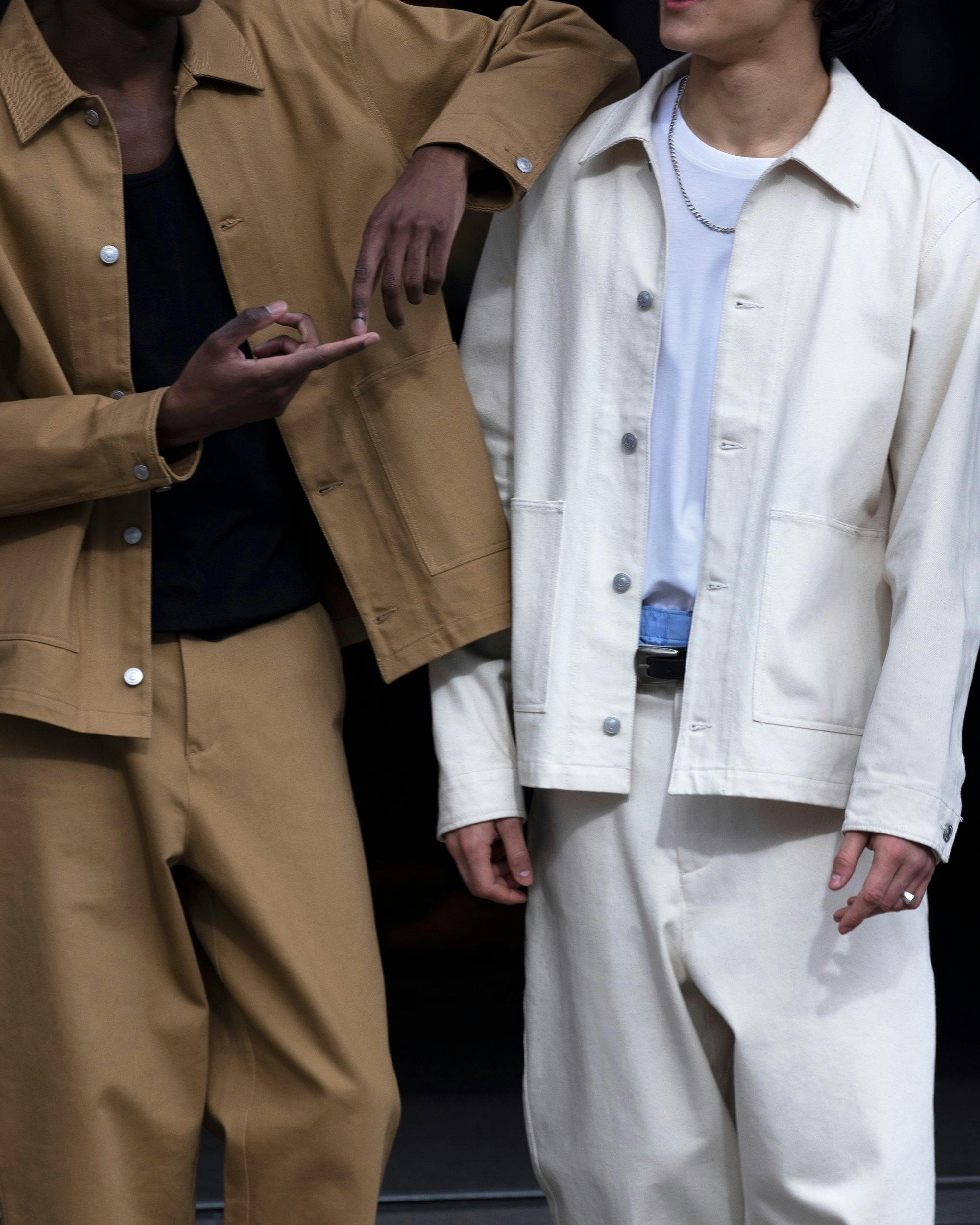 Inspired by the function-first design of workwear, this jacket is a modernized take on the classic chore jacket. Arriving in neutral colors with silver-toned, branded hardware and a boxy fit, it features two large front pockets and a flag label on the left side. The jacket is crafted from hard-wearing, organic drill cotton with matching pants also available.