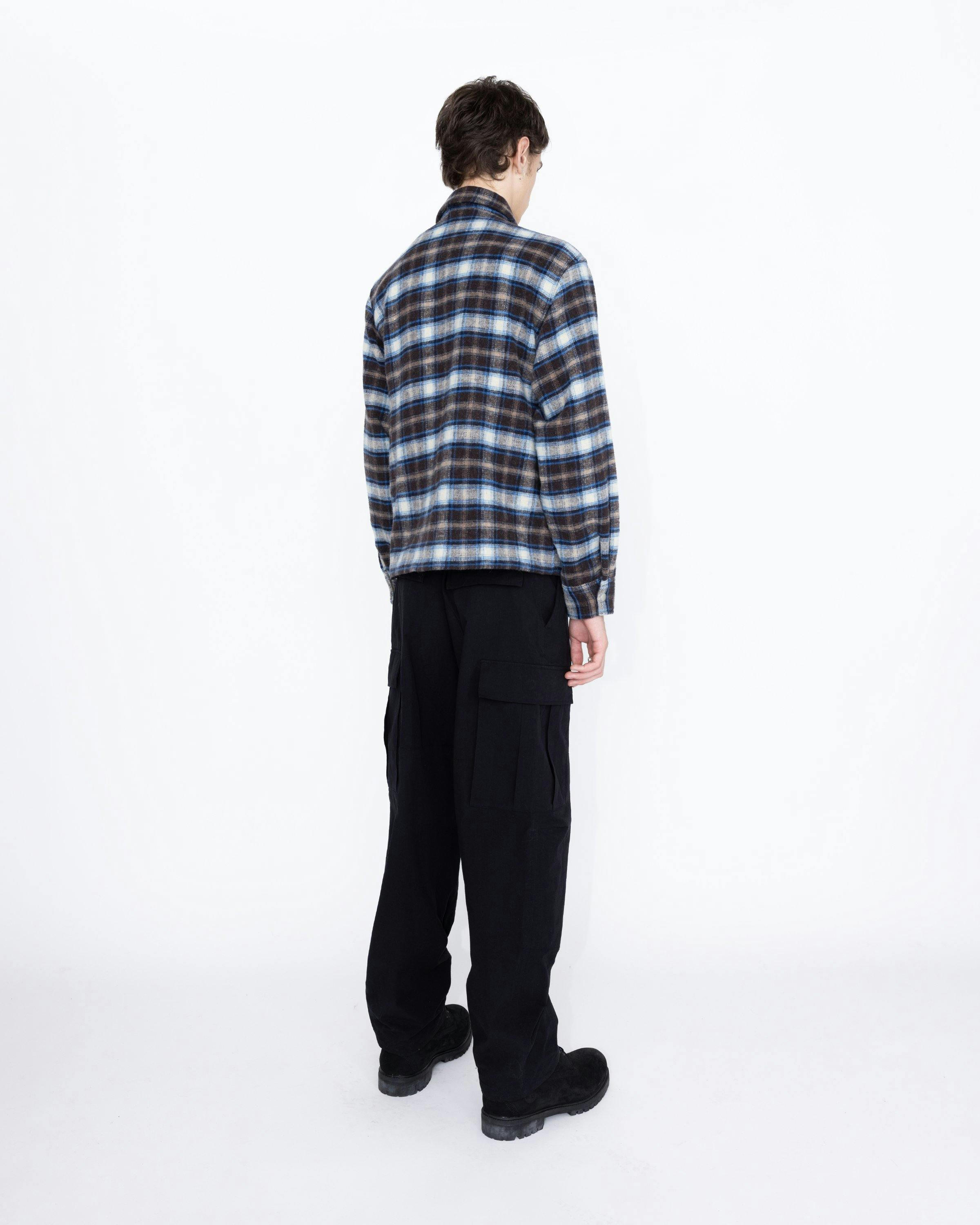 The Shaggy Plaid Shirt is made of wool blend fabric with an all-over check pattern. The boxy fit gives the style a more distinct look, which is enhanced by the spread collar, chest patch pockets, and zip fastening. The top is finished with side seam pockets as well as a woven brand tag near the hem.