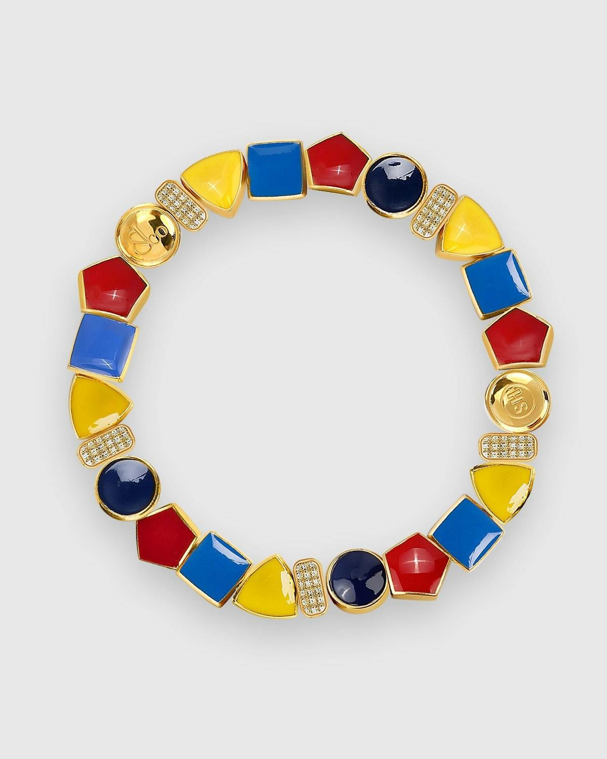 The Jacob & Co. x Highsnobiety Diamond Bracelet is a nod to the New York-based watchmaker’s iconic Five Time Zone Watch. The four multicolored shapes are taken directly from the trademark Jacob & Co. timepiece, while additional round charms are implemented to showcase both Jacob & Co. and Highsnobiety logos. Additionally this version comes with five diamond encrusted rectangles intersecting the signature Jacob & Co. shapes. Our collaboration with Jacob & Co. is characterized by elevated design details drawn from the luxury jewelry brand’s most iconic pieces. Items like this bracelet are crafted from high quality materials and decorated with co-branded elements that signal the joint release.