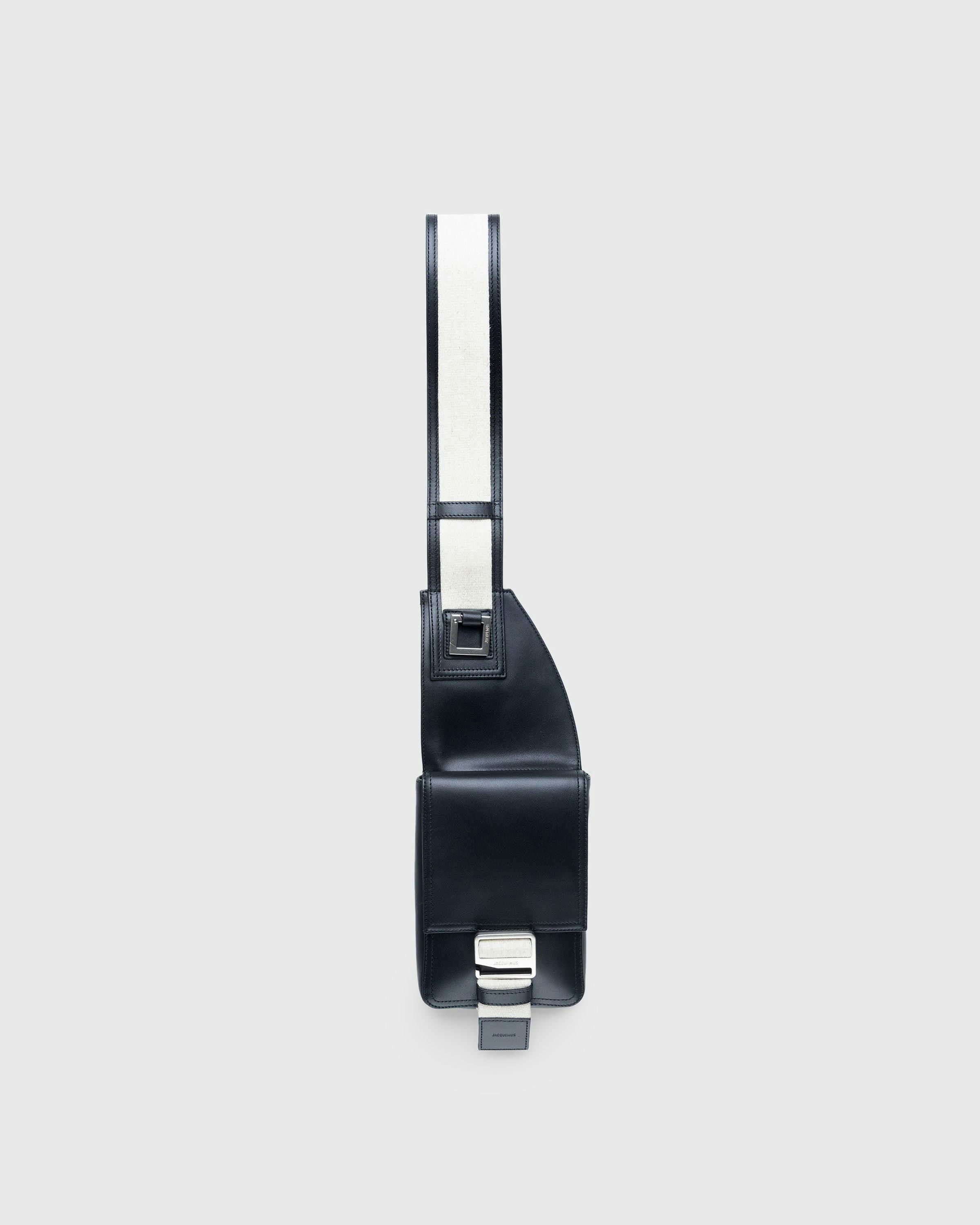 La Banane Cuerda is a luxe bum bag executed in smooth cow leather with full cotton lining. It is outfitted with an adjustable shoulder strap and features a magnetic flap pocket with a metal buckle, a side zip pocket, and an interior patch pocket. The bag comes with an engraved square carabiner and is further embellished with an embossed Jacquemus logo.