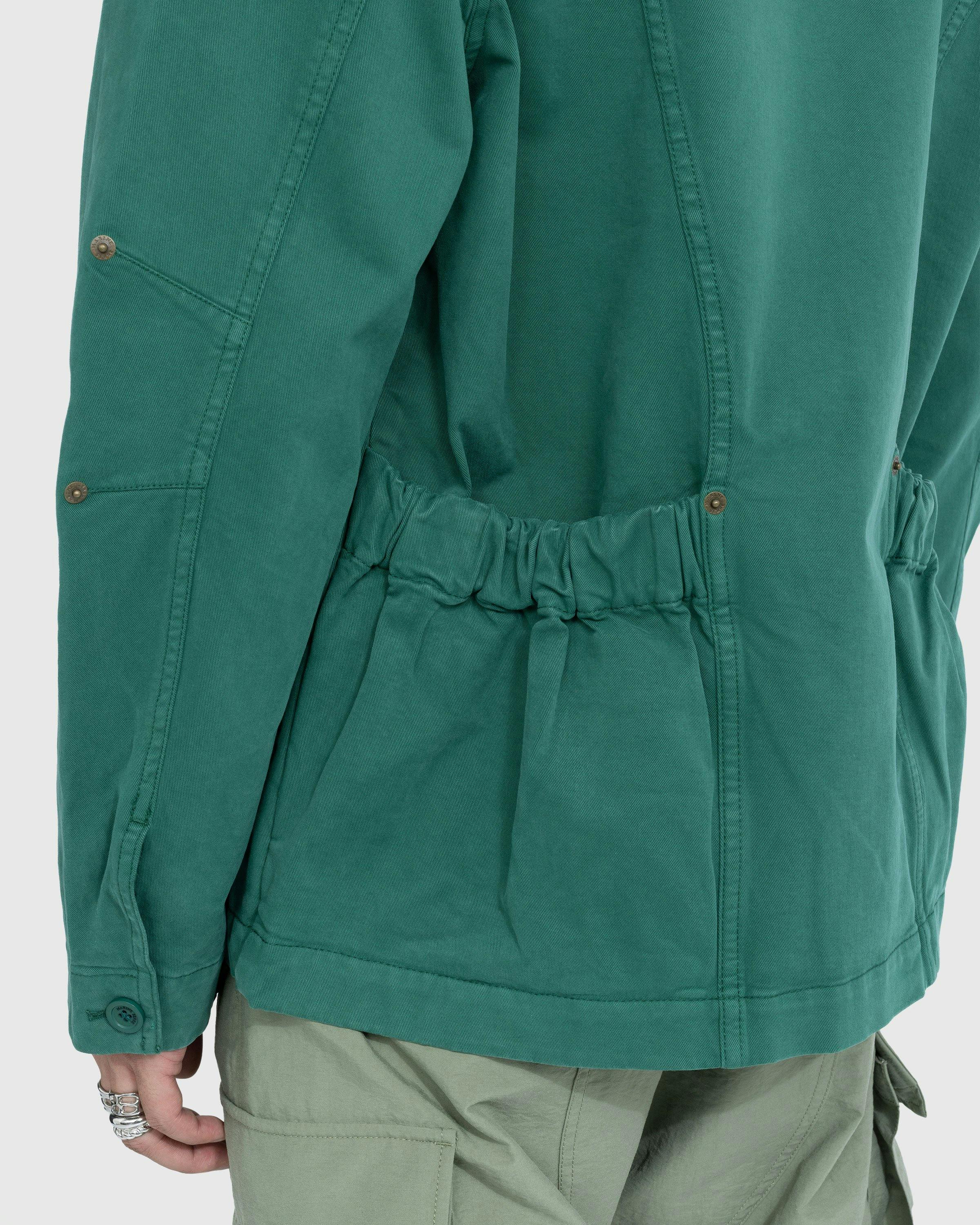 A high-fashion take on a classic outerwear style, the Marine Serre Workwear Jacket arrives in a seasonal green colorway, predominantly produced in cotton. It is outfitted with a series of functional pockets on the front as well as the back and embellished with contrasting logo embroidery at the chest. Additional details include a straight point collar, button closure, and button cuffs.