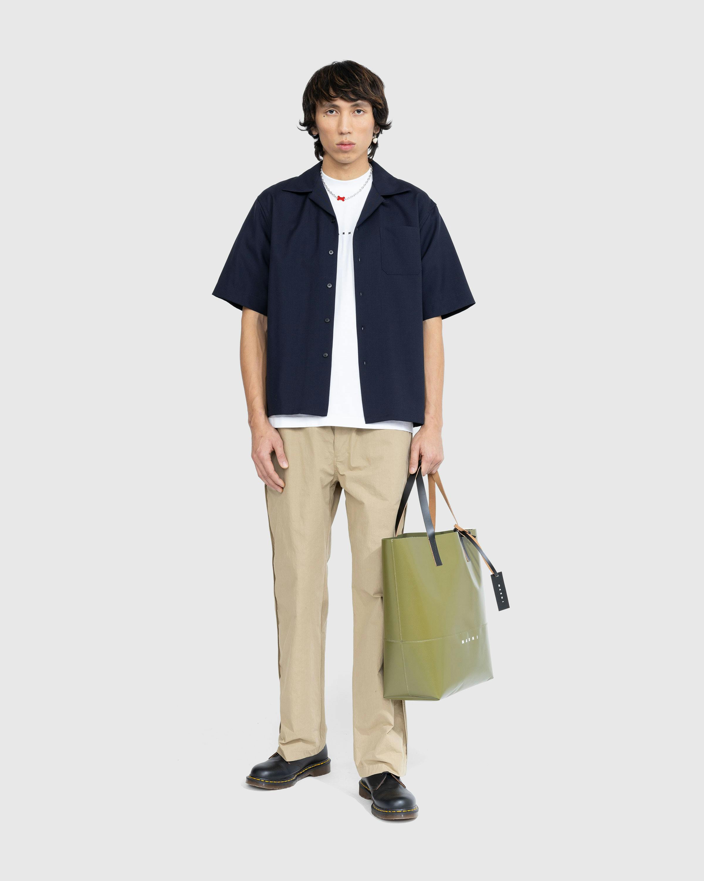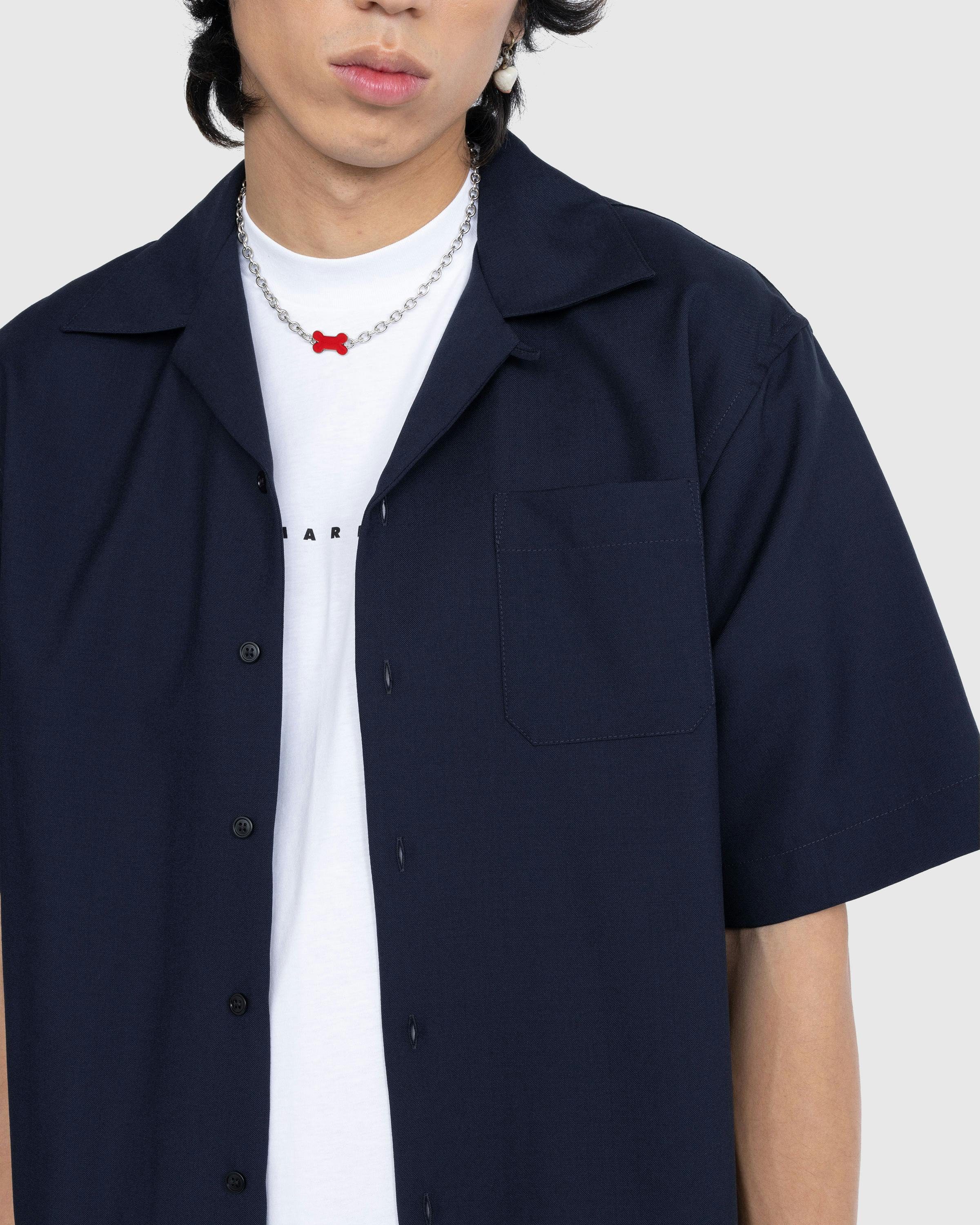 Primed for any setting, Marni's Bowling Shirt is characterized by its boxy fit and straight hem. The short-sleeved top is made from tropical wool with a soft texture and features a Cuban collar, chest pocket, and tonal button closure.