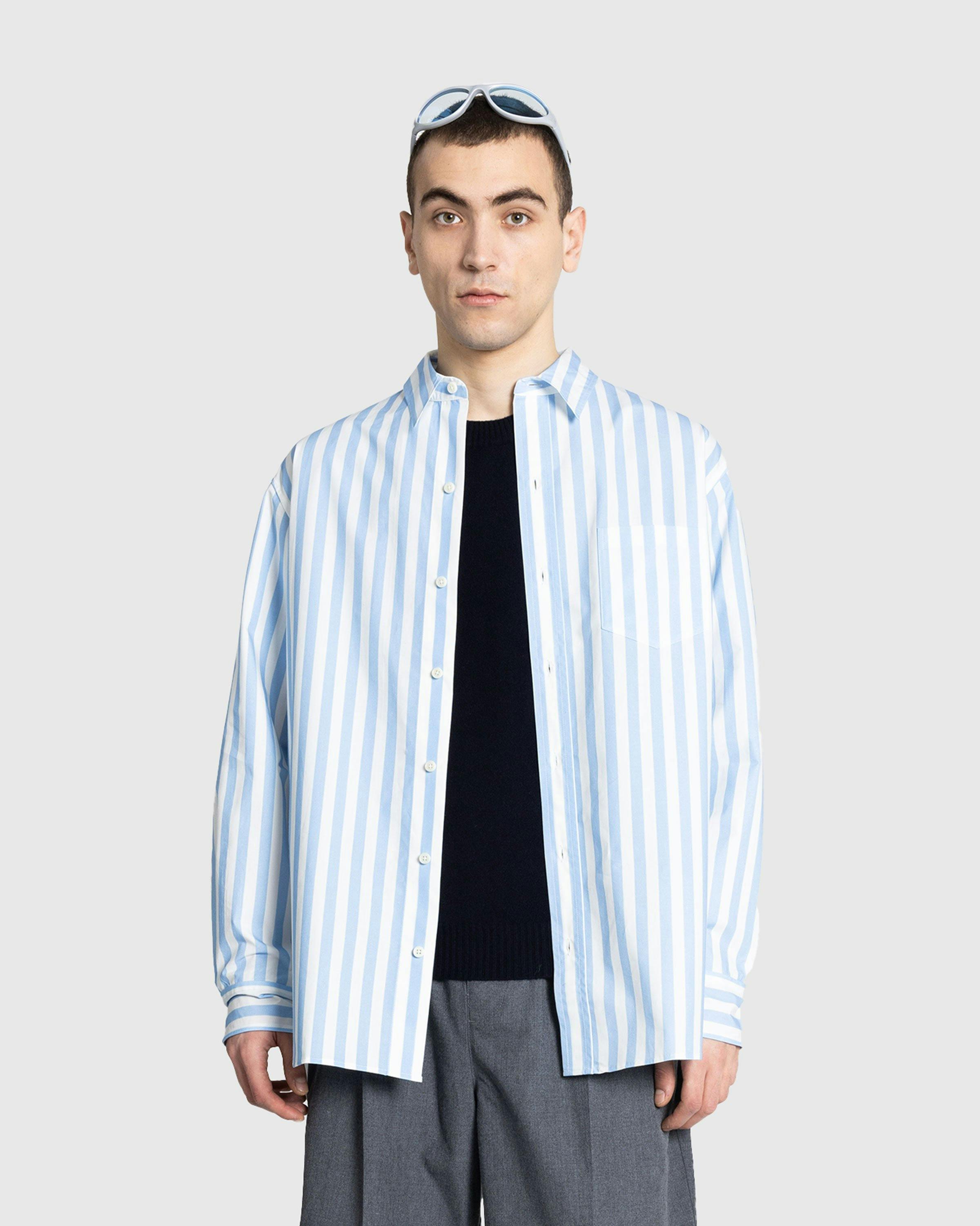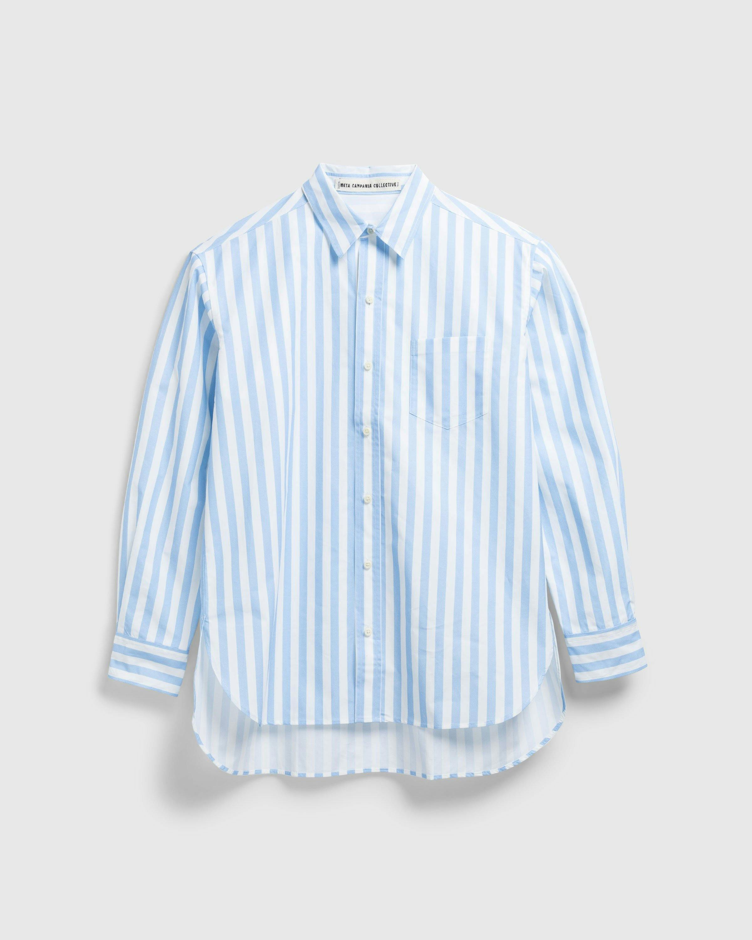 Pablo Exaggerated Unlined Organic Cotton Poplin Shirt Light Blue Stripe