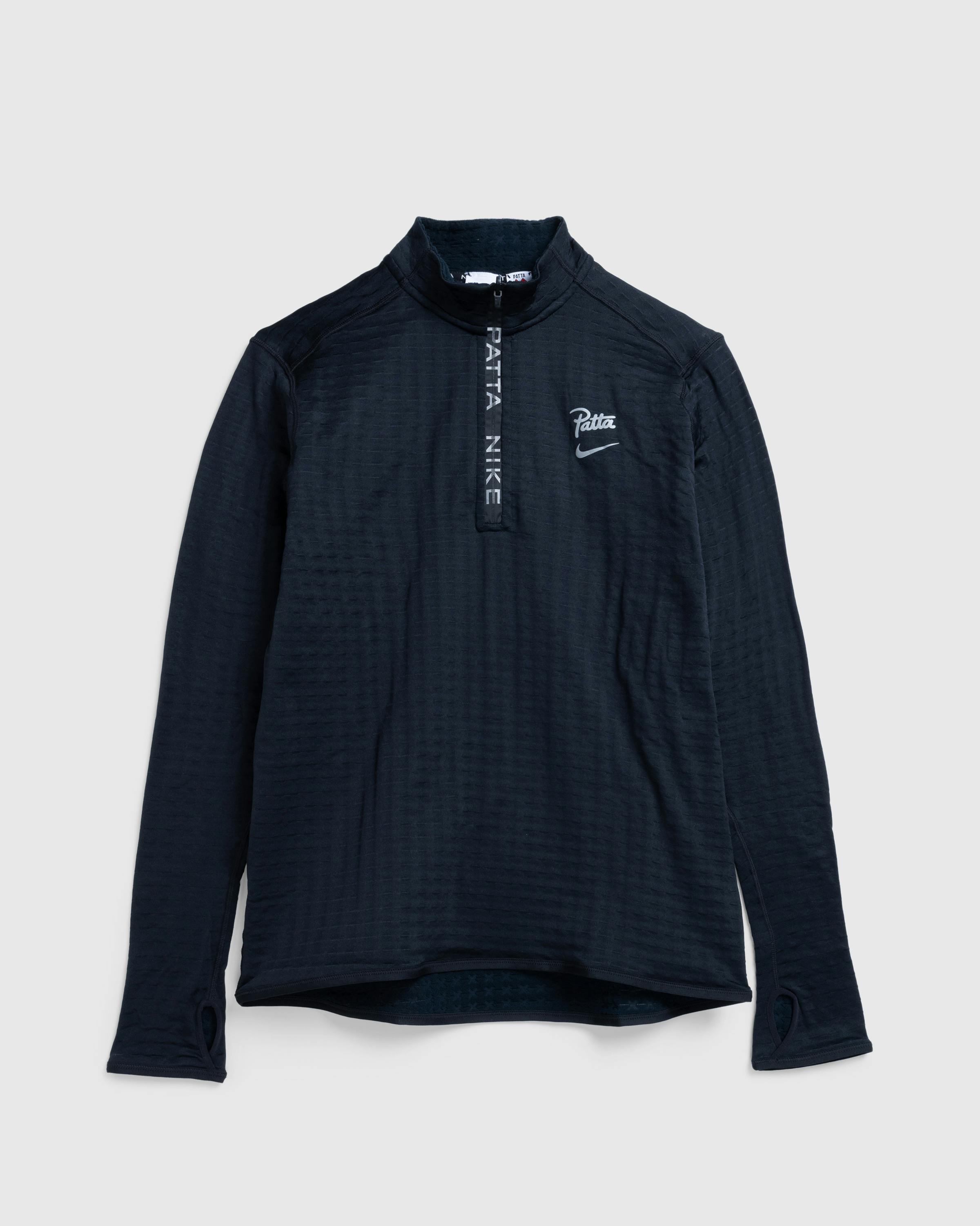The Nike x Patta Half-Zip is a running-inspired style crafted from a technical polyester blend fabric. It is cut for a tight unisex fit and detailed with a custom jacquard knit “X” pattern inspired by the three crosses on the flag of Amsterdam. Other design elements include a stand collar with half-zip fastening, long sleeves with thumbholes, and a straight hem. Nike x Patta branding is then incorporated throughout the garment to signal the collaboration.