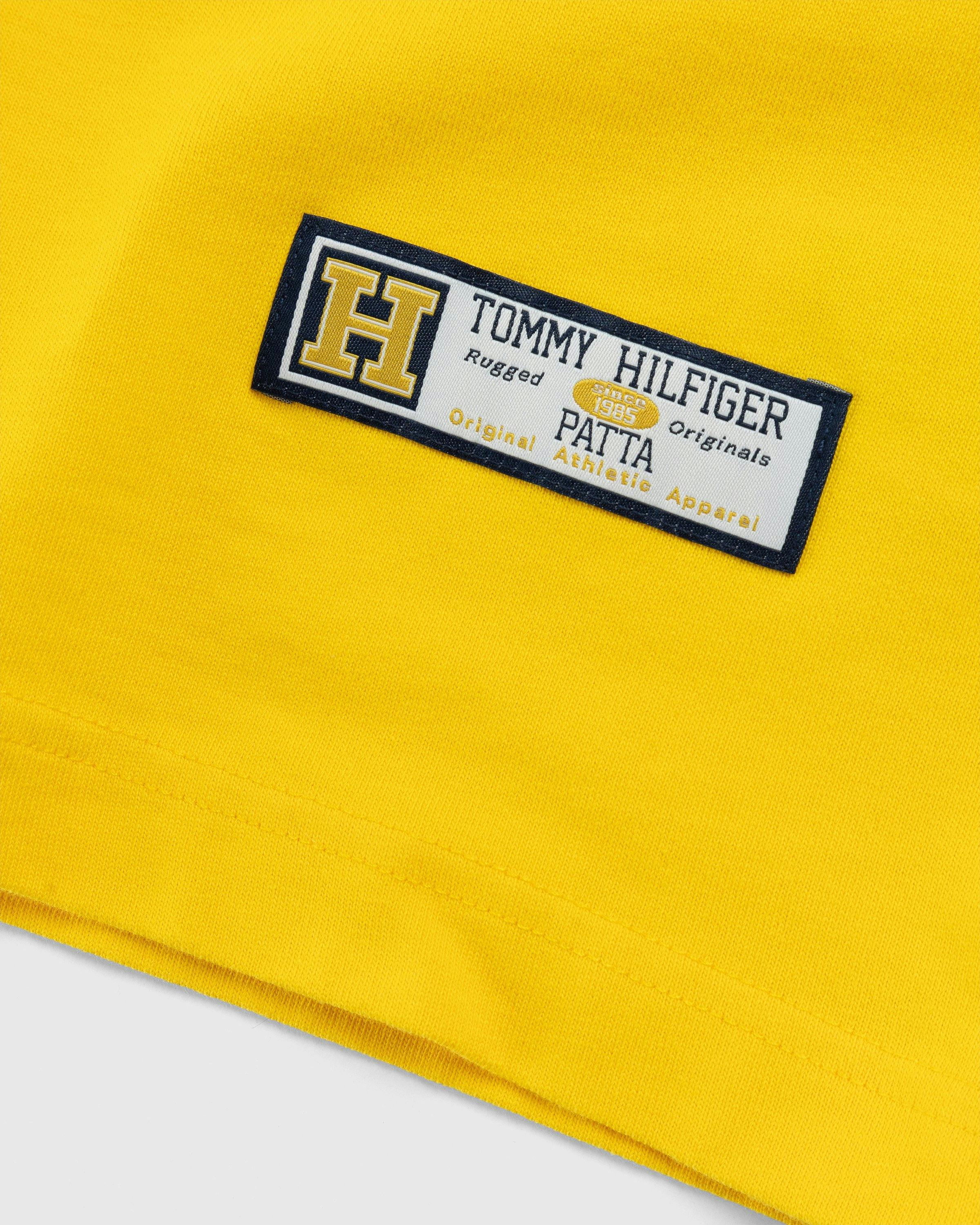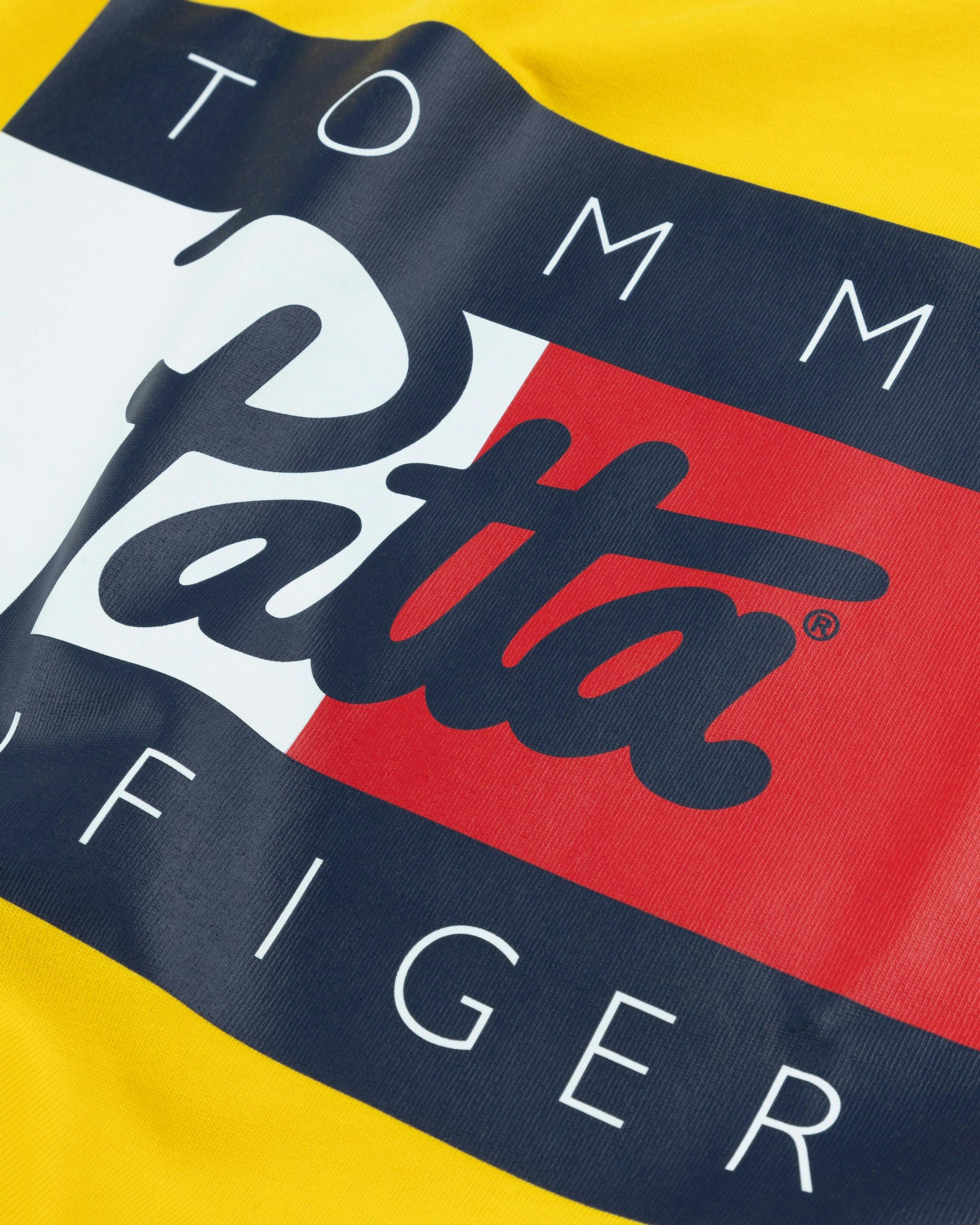 Tommy Hilfiger’s iconic flag is reimagined with Patta branding to celebrate the second collaborative collection between the two, one that revives the spirit of ‘90s hip-hop and simultaneously pays tribute to both brand’s streetwear heritage. The co-branded t-shirt is produced in a heavy organic cotton material, cut in a relaxed fit for an extra comfy, fashion-forward look. A Patta x Tommy woven tab is incorporated just above the hem to complete the collaborative design.