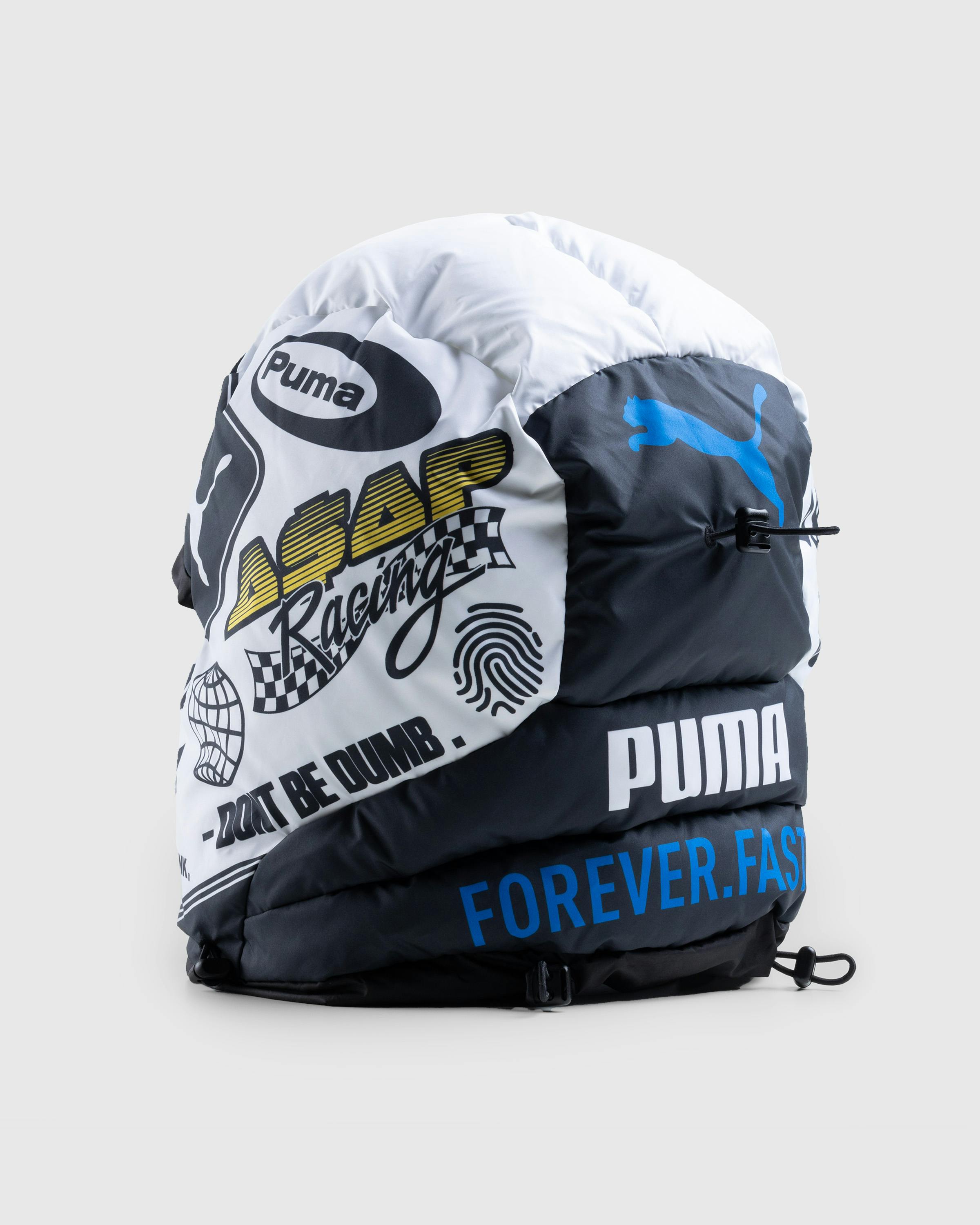 The Padded Balaclava is one of many pieces from A$AP Rocky's new collaboration with PUMA. Crafted to resemble a racing helmet, the accessory has a fully padded design with all-over contrasting PUMA logos. The Balaclava is finished with a removable visor insert, bungee cords to dial in the fit, and a bold AWGE logo at the center.
