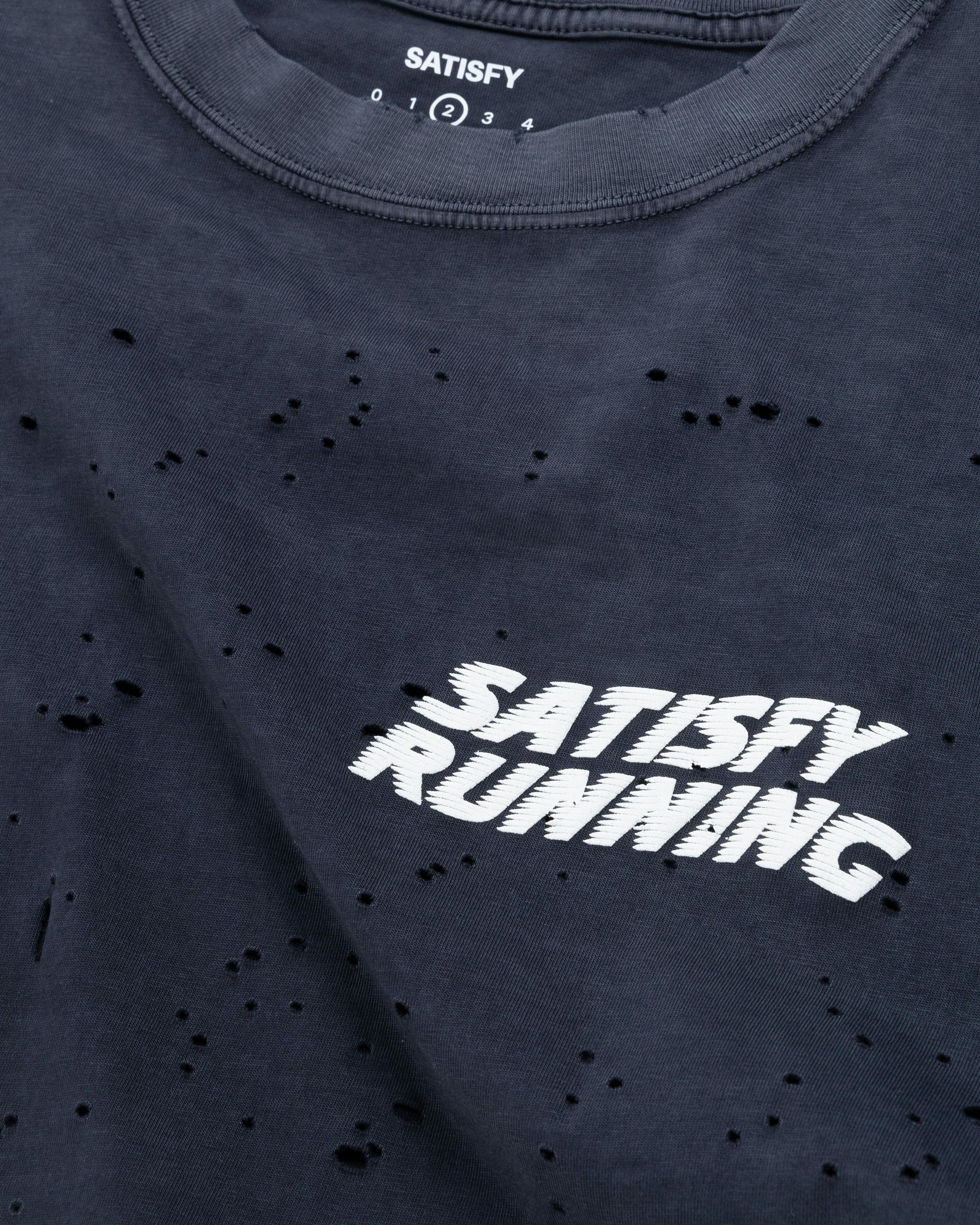 With its signature MothTech T-Shirt, Satisfy proves it's okay to run in cotton. The polarizing style is produced in an organic combed cotton jersey from Portugal and defined by MothTech holes that are strategically placed throughout for enhanced ventilation and cooling. The brand's wavy logo is showcased on the front of the garment in a playful puff print.