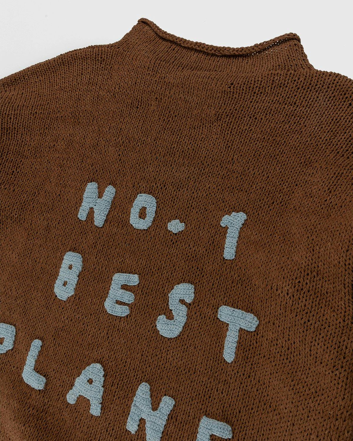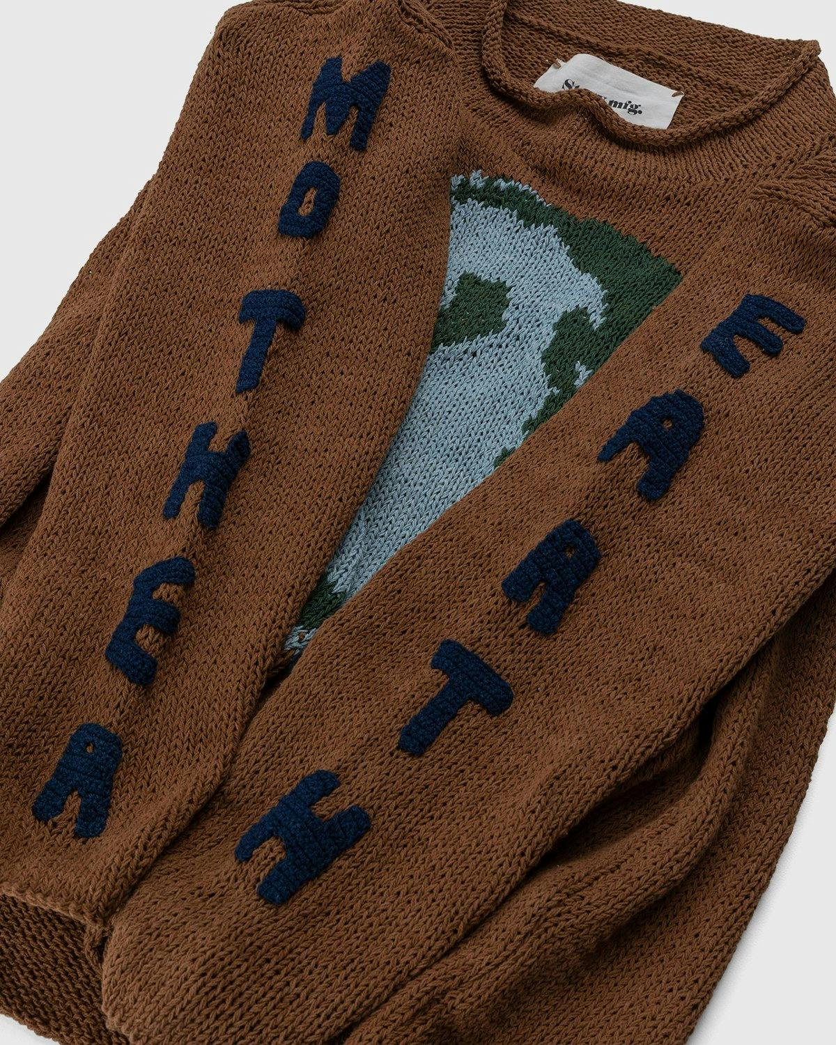 Best known for its intricate knits, it should come as no surprise that STORY mfg. sweaters are on a whole other level. The Twinsun Rollneck is a prime example, boasting detailed hand crochet appliqués that bring the piece to life. On the front you will find a graphic of planet Earth, while the back is adorned with the phrase “No. 1 Best Planet.” The sleeves are then embellished with the words “Mother Earth.” Like many STORY mfg. pieces, the sweater is entirely hand knit using all-organic cotton yarn that is naturally dyed. STORY mfg. SS22 collection is a celebration of artistry and craft. The sustainable fashion brand explores familiar narratives, including a love for the earth, plants, happiness, and good friends. Natural dyes are on full display throughout the assortment, paired with modern CNC-cut shapes to create new patterns.