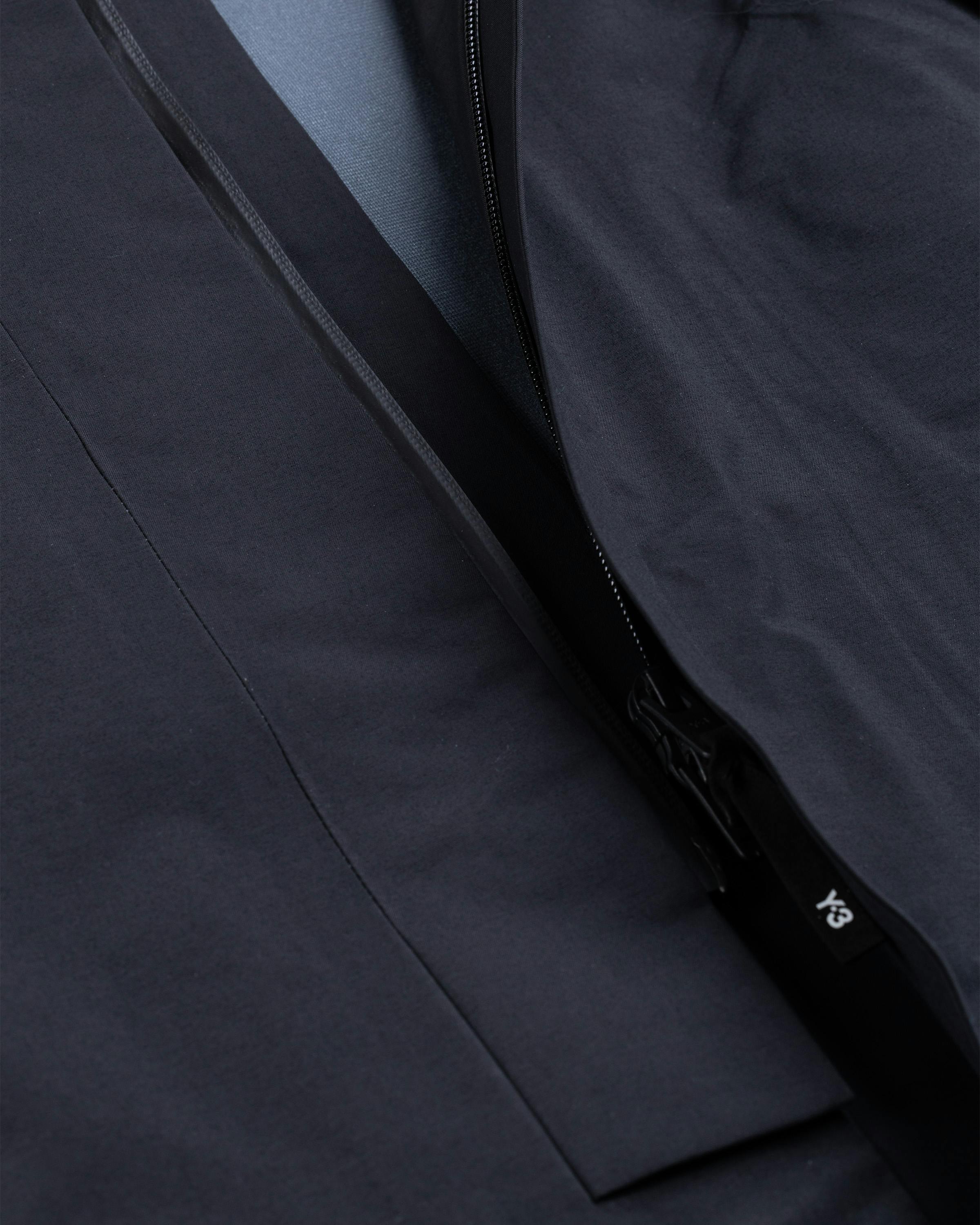 Designed for harsh weather conditions, the Hardshell Coat is fully waterproof and seam-sealed, featuring a three-layer GORE-TEX finish for superior protection. A waterproof zipper keeps out rain, while a detachable hood offers added coverage. The garment is cut for a loose fit that creates an elegant drape, finished with front flap pockets and Y-3 logo detailing.