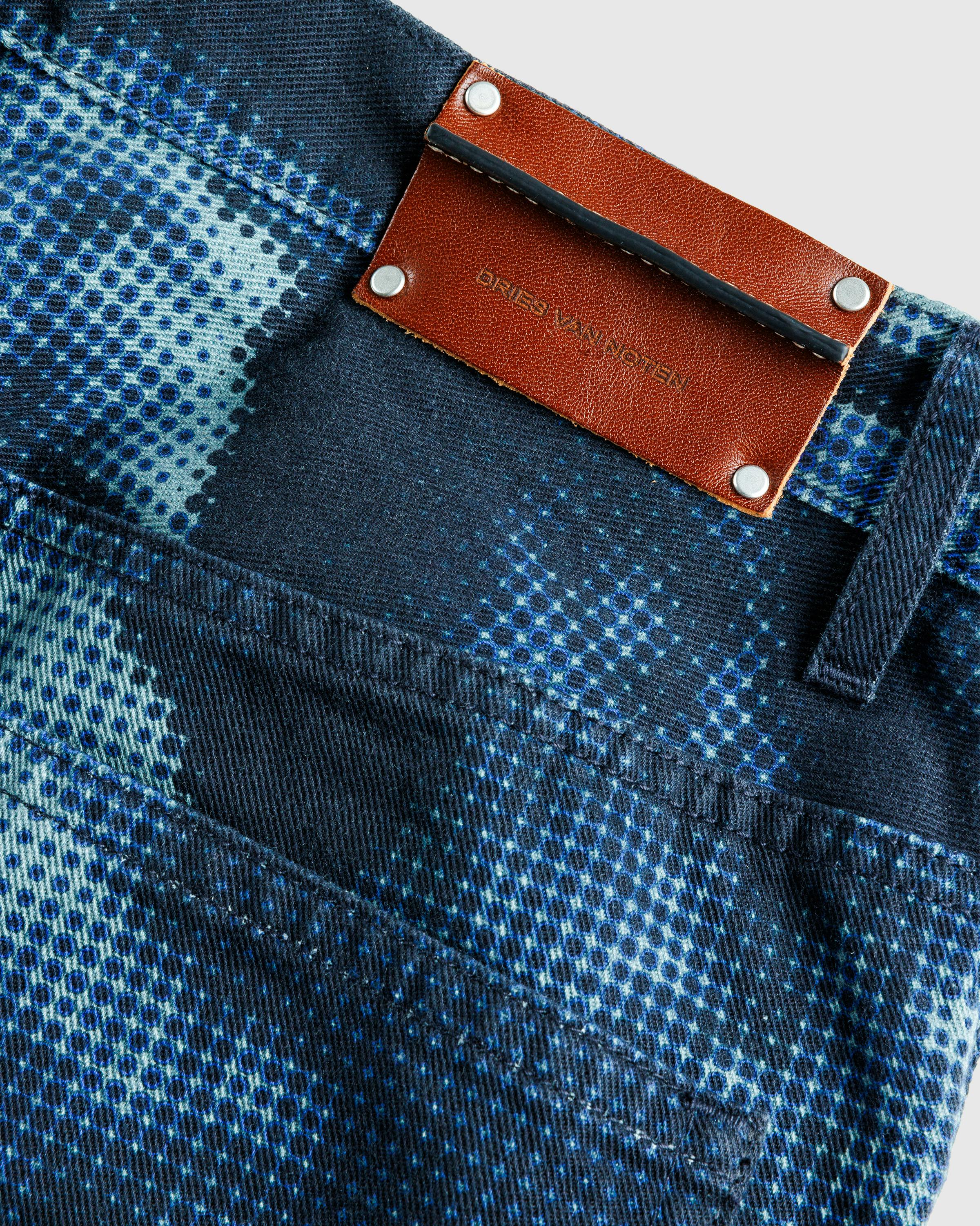 Per the name, the Printed Jean from Dries van Noten is defined by an all-over printed motif depicting a pixelated scene. The pair is cut for a regular fit with a straight leg from 100% cotton and features traditional five-pocket styling. Additional design elements include button fastening, a concealed fly, and belt loops lining the waist. A leather logo patch is applied to the back of the waistband to complete the look.