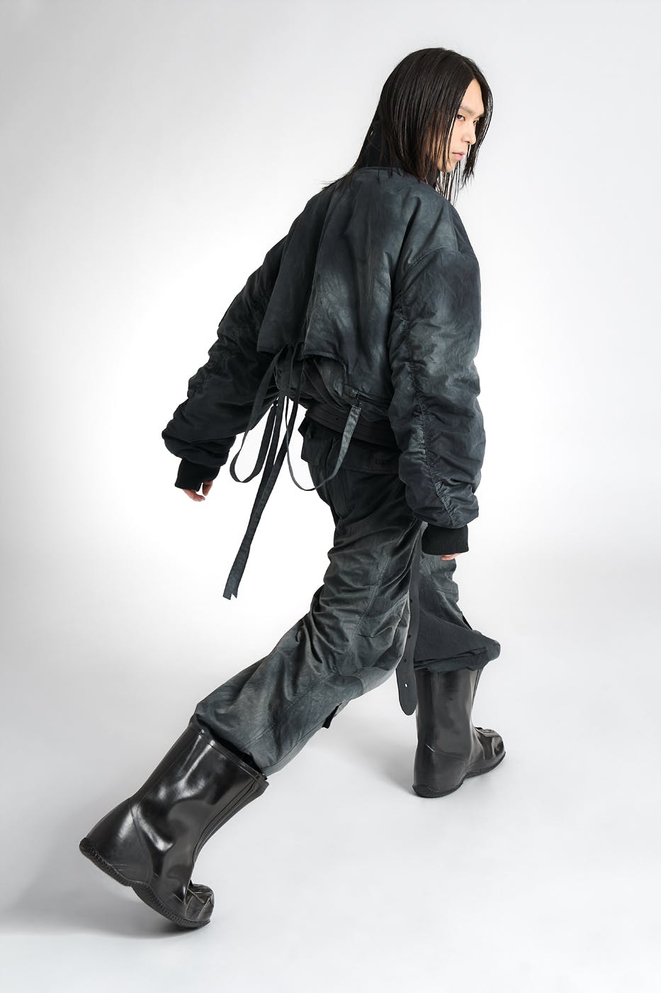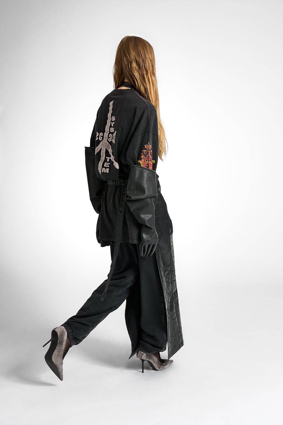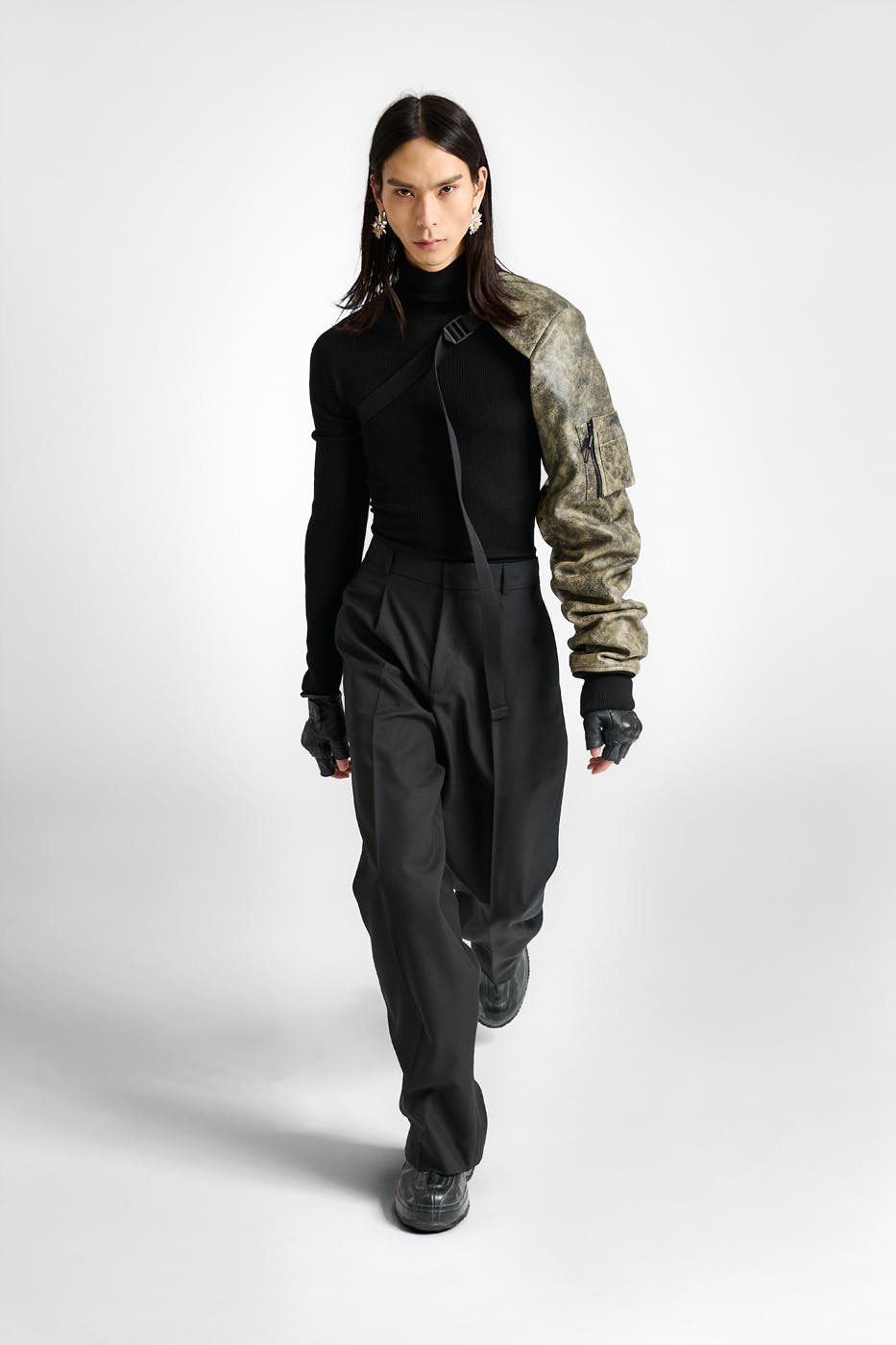 032c's FW23 collection delivers a lot of the stuff you'd expect: worn 'n washed midlayers made of beefy cotton jersey, distressed knitwear, thick leather.