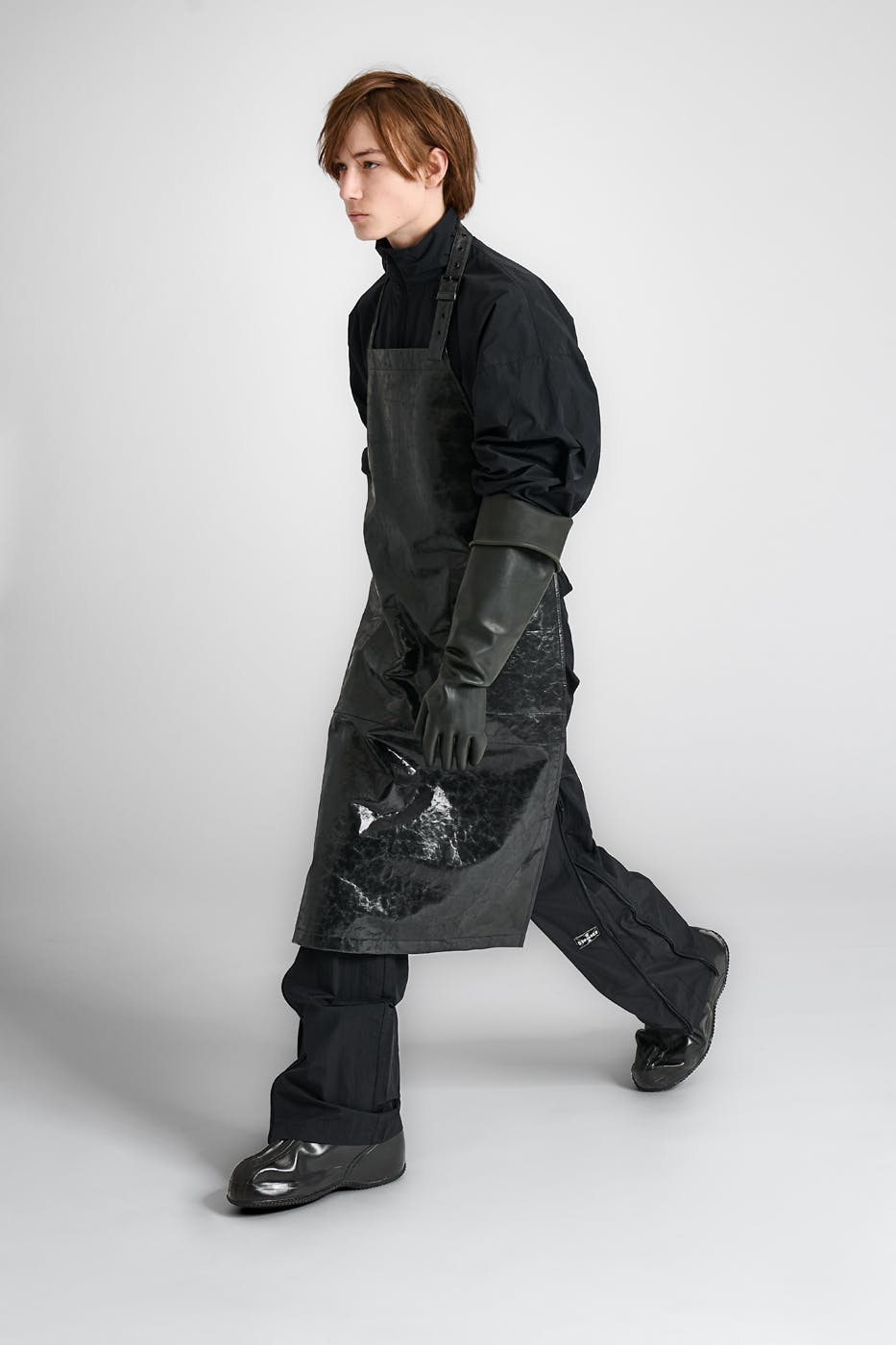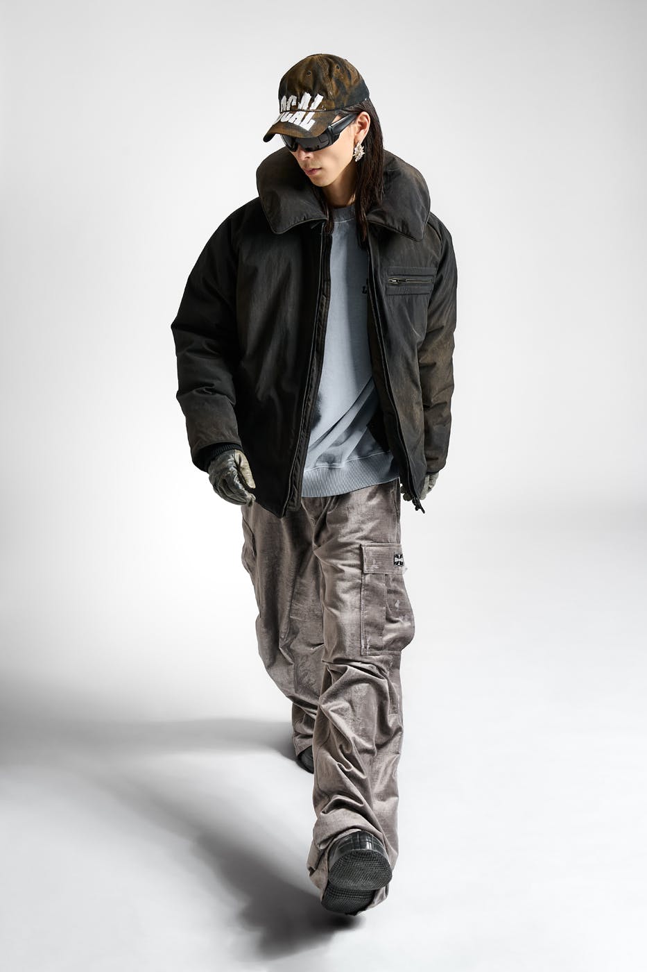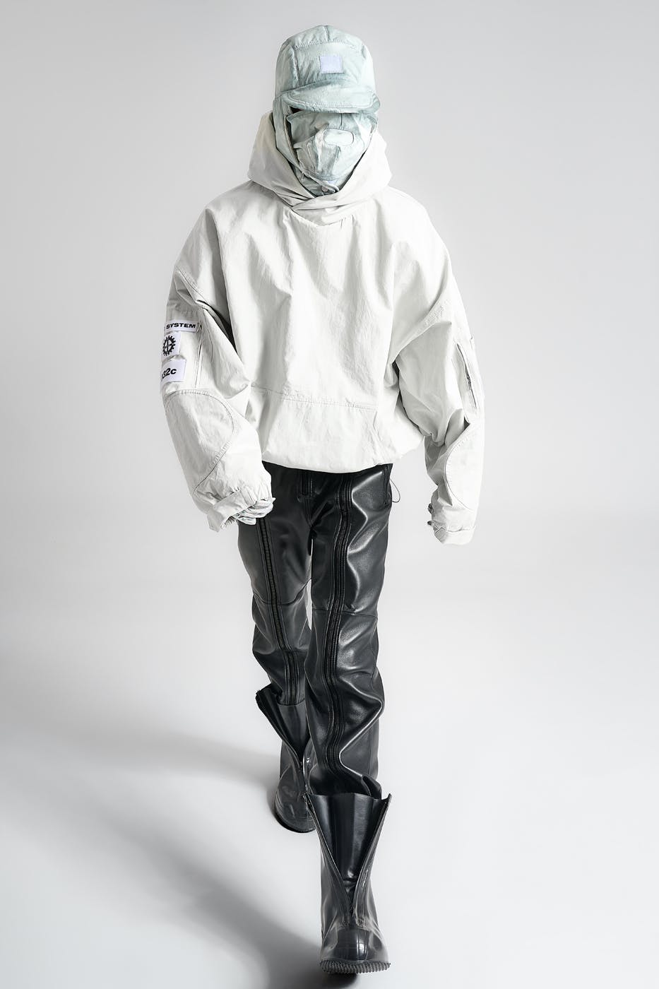 032c's FW23 collection delivers a lot of the stuff you'd expect: worn 'n washed midlayers made of beefy cotton jersey, distressed knitwear, thick leather.