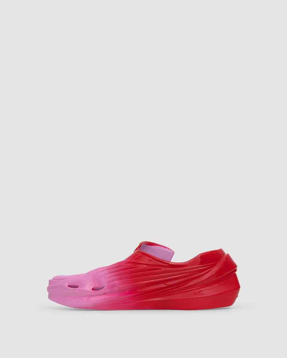 As a part of a special SS22 capsule, ALYX presents the Mono Slip-On in an eye-catching red and pink colorway inspired by the volcanic Aeolian Islands of Stromboli. Made from a single piece of EVA foam, the Mono Slip-On and its seamless construction offer superior comfort for all-day wear. This particular iteration of the shoe stands out due to the vibrant colorway and more specifically, the fade treatment that blends the red and pink hues.