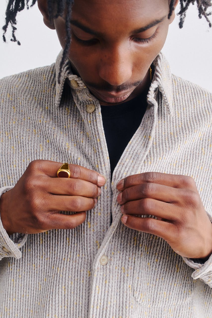 On the heavier side, more corduroy lands on shirts with printed paisley patterns and, a particular favorite of mine, delicate yellow speckles.