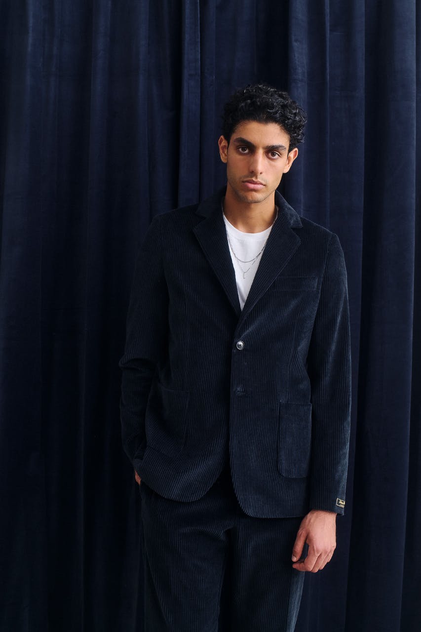As you might have guessed, corduroy plays a major this season. In particular a new type of textured corduroy is realized across suiting and overshirts, while other shirting appears in various forms from washed denim with a contrasting corduroy collar, to soft cotton with an irregular chenille yarn weave.