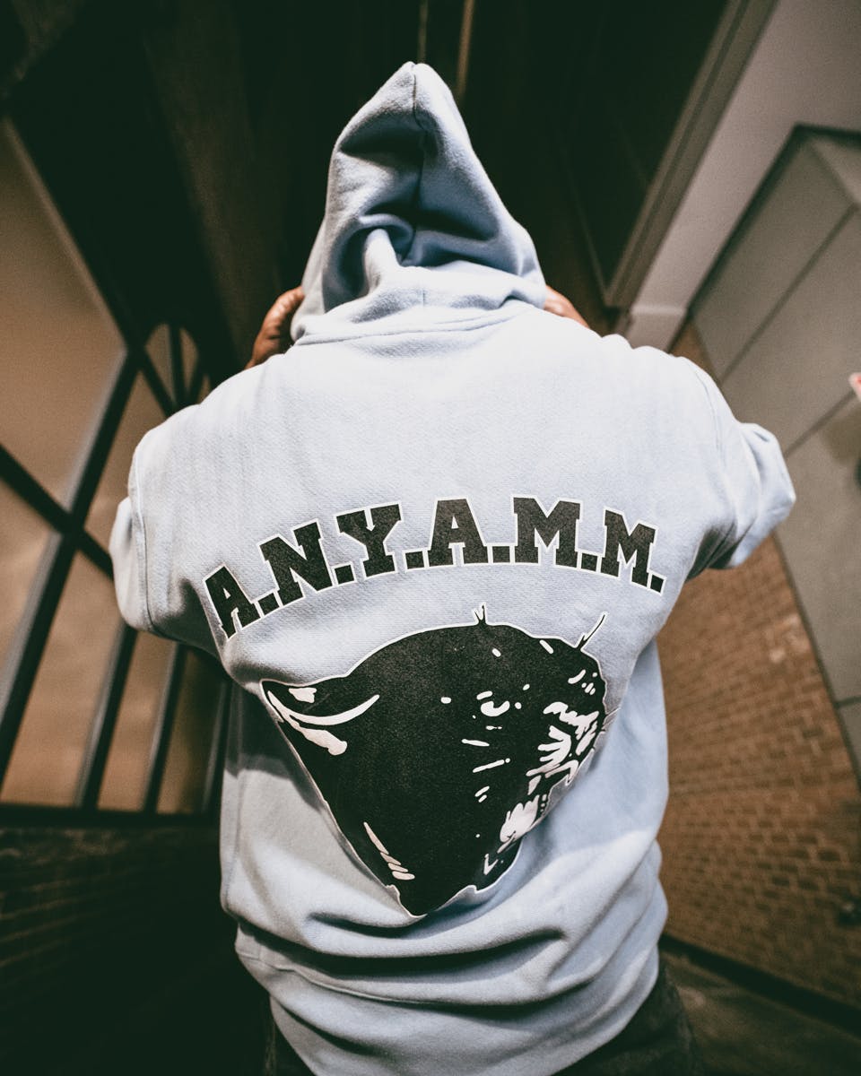 Incorporating the feels of vintage H.B.C.U., or historically black colleges and universities, gear, A Ma Maniére x Awake NY hoodies, sweatpants, and tees sport collegiate co-branding, including an abbreviated "A.N.Y.A.M.M." university name, on the front and back of the garments.