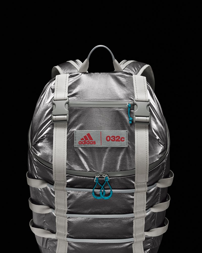 Previously, the collaboration has stuck to military-focused colorways – black and army green. But now with this release, 032c and adidas have changed things up, with a futuristic silver metallic colorway.