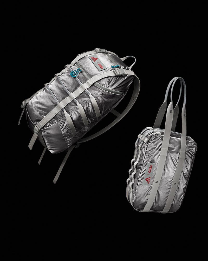 On the accessories front, the duo have produced a military-inspired backpack and tote. The functional metallic silver bags are accented by grey detailing and contrast blue and red tags. Perfectly matched with the kicks, wear the set together to get your future fits off.