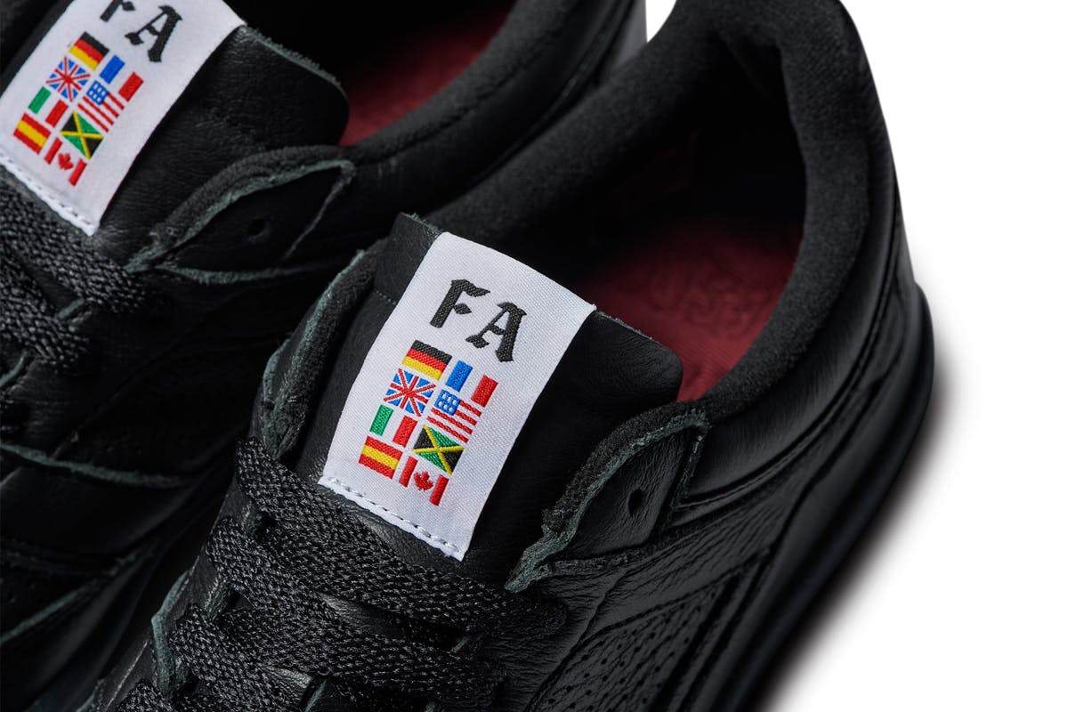 Seriously, the only color coming from this triple black FA x adidas sneaker is its debossed burgundy insole and vibrant flag-design tongue.
