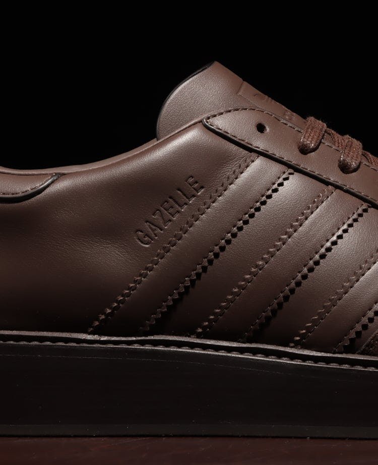 The adidas Gazelle, the Samba's runner-up as far as flat shoes are concerned, has also developed substantial street cred in the sneaker world, and adidas' decadently chocolate Made In Italy Gazelle transcends beyond that established clout.