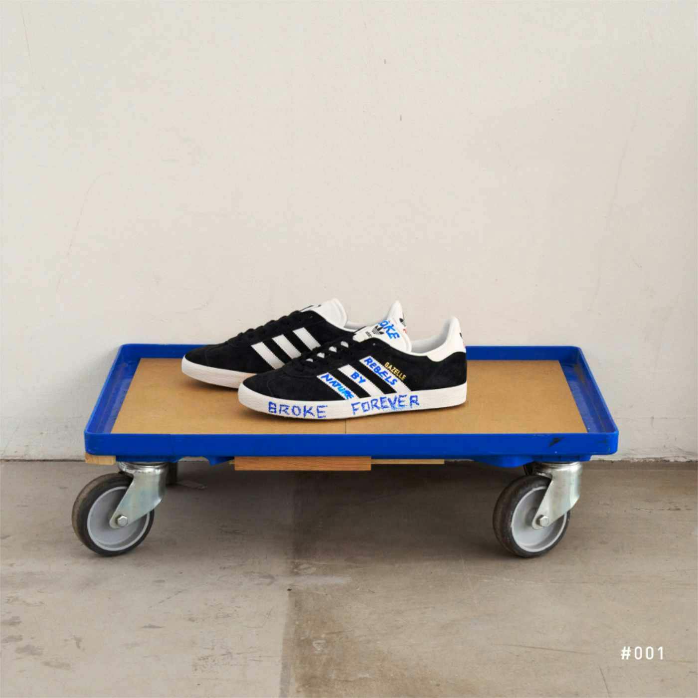 It's an ample selection, to say the least. "Home of Classics" ranges from more conceptual works like Gab Bois' Forum desk lamp and Sophie Crichton's abstract canvases (painted with Forums in place of brushes) to sneakers with hand-scriblled customization from the likes of musician Dee Koala and cult rapper Lil Dre.