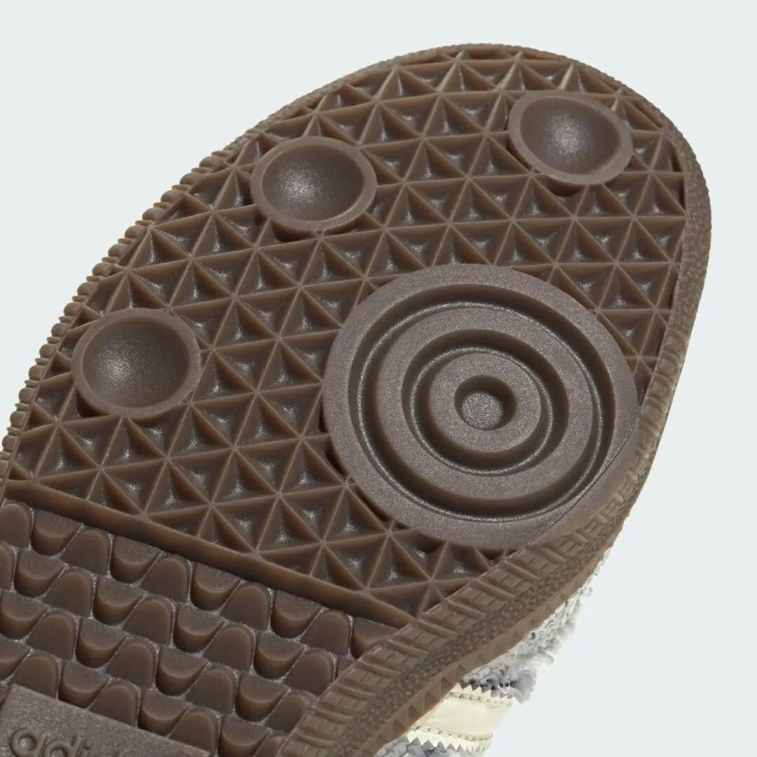The shoe is built on sports history, evolving from indoor football courts to the sidewalks of every stylish city on the planet. But Hu’s collaborative shoe shifts the narrative. With its hairy textile layering and unexpectedly luxe silk uppers, Hu’s adidas Samba feels considered and delicate.
