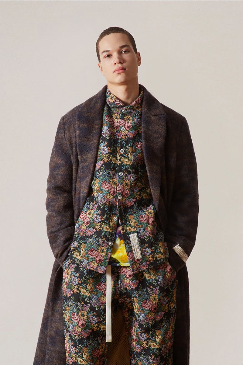 Guest and Harber have been tending to the SS21 collection — "A Study in Camo" — while in lockdown. The collection includes a range of shorts and long-sleeved tees, sweaters, and earthy, floral, tie-dye, and fine china-patterned jackets. It's a conceptual camouflage made for the label's native Cali; something that would allow the wearer to blend in among the rolling nature, quaint vintage shops, and '60s Hippie movement remnants.