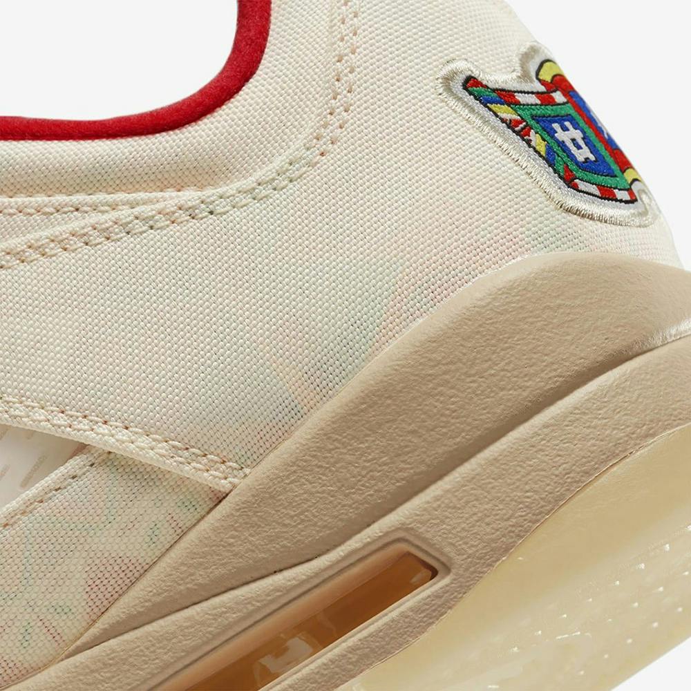 In terms of branding, the Air Jordan 5 Low "CNY" features the signature Jumpman logo on the tongue, insole, and outsole, as well as Chinese New Year-specific insignias on the back of the tongue and on the heel.