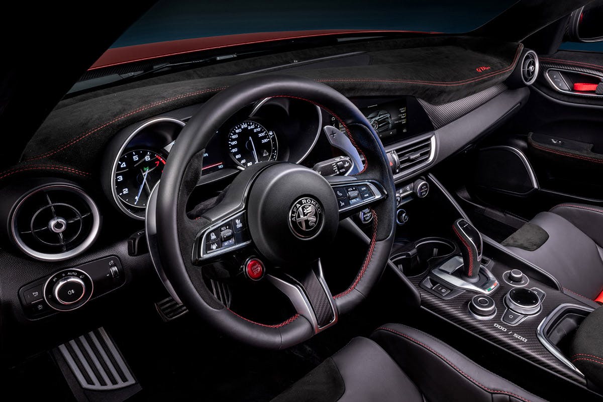 The Giulia Quadrifoglio GTA boasts a 2.9-liter twin-turbocharged V6 engine that delivers 540 horsepower, 30 more than the base model. Carbon fiber components have then been applied to reduce weight by approximately 220 pounds. The new and improved ride also comes with 20-inch center-locking wheels and a titanium exhaust system, in addition to performance-specific suspension bushings, shocks, and springs.