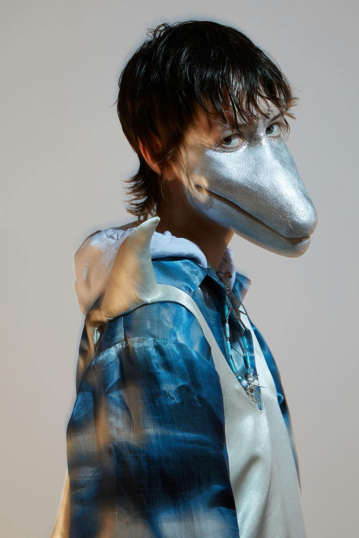 At Collina Strada, makeup artist Isamaya Ffrench outfitted models in colorful prosthetics that transformed them into dolphins, rabbits, and dogs — a fur and skin-free way to capture the beauty of the animal kingdom. Collina Strada wasn't the only show that featured animal-inspired makeup: Mimicking the undulating pattern of snake skin, Ffrench applied iridescent eyeshadow to models' foreheads at Dion Lee.