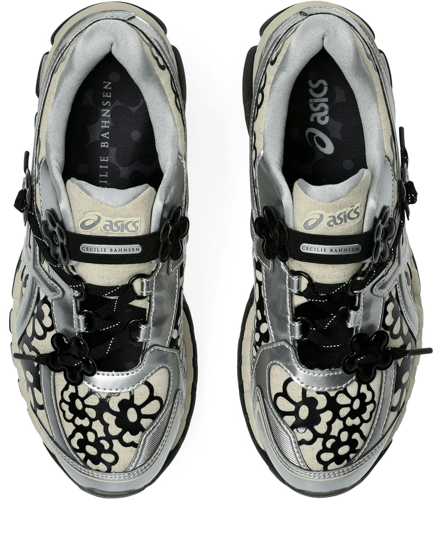 “This is a new take on the original ASICS Mary Jane we designed, but something more sculptural, with even more contrast,” said Cecilie Bahnsen in a statement. “I loved the asymmetrical lacing from the marathon tabi, and could immediately imagine it with our signature flower detailing used as lace locks.”